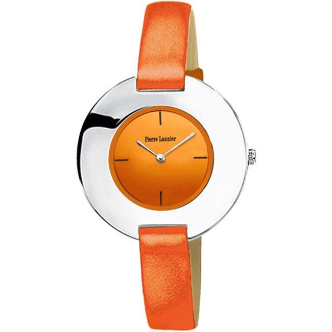 ساعت مچی زنانه پیرلنیر pierre lannier با طراحی روزانه بند چرمی نارنجی و قاب گرد استیل و صفحه گرد نارنجی و موتور ژاپنی با انرژی باتری و مقاوم در برابر آب تا عمق 30 متر به همراه گارانتی بین المللی