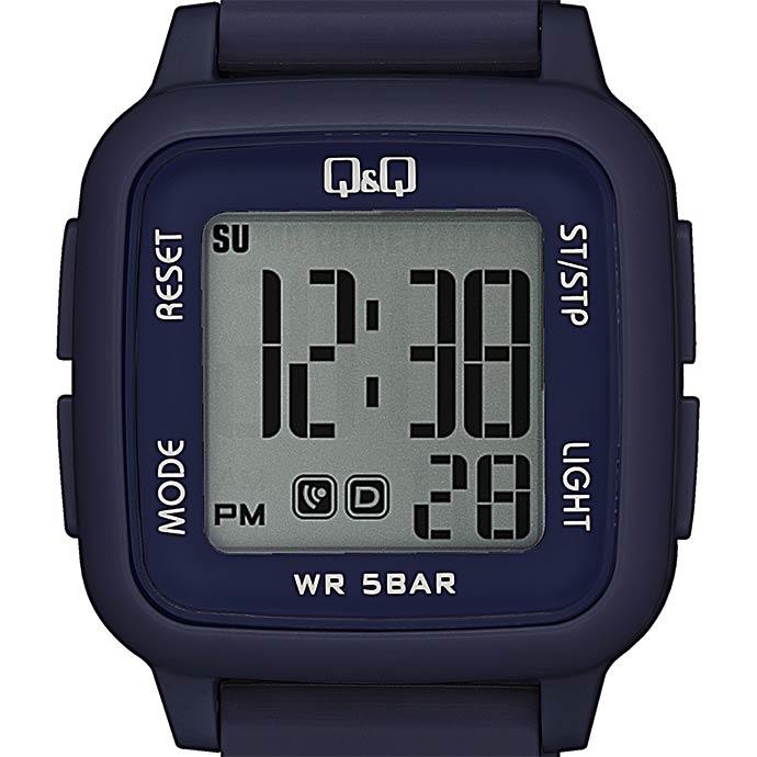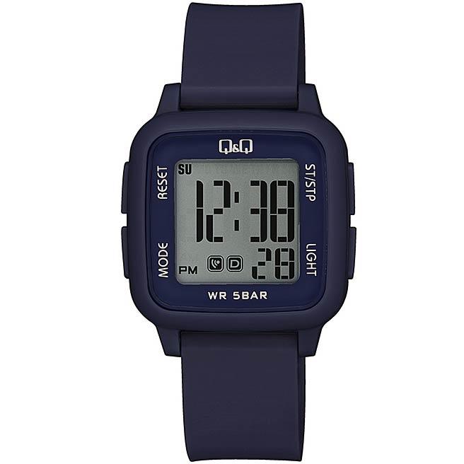 ساعت مچی دخترانه/پسرانه کیو اند کیو QQ با طراحی روزانه بند سیلیکونی سرمه ای و قاب مربع سرمه ای و صفحه دو رنگ با نمایشگر دیجیتال و قابلیت داشتن کرنوگراف , روزهای هفته, روز و شب, نور پشت صفحه, زنگ هشدار تقویم و موتور ژاپنی با انرژی باطری و مقاوم در برابر آب تا عمق 50 متر به همراه یک سال گارانتی شرکت