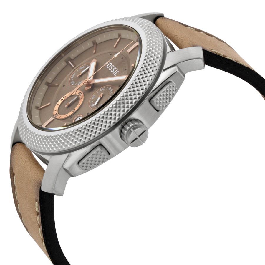ساعت مچی مردانه/پسرانه فسیلFOSSIL با طراحی اسپرت بند چرم کرم رنگ با قاب گرد با صفحه کرم و موتور با کاربرد تقویم و کرنوگراف به همراه دو سال گارانتی بین المللی شرکت آرمان گالری ساعت مچی مردانه فسیل | FOSSIL | FS5192