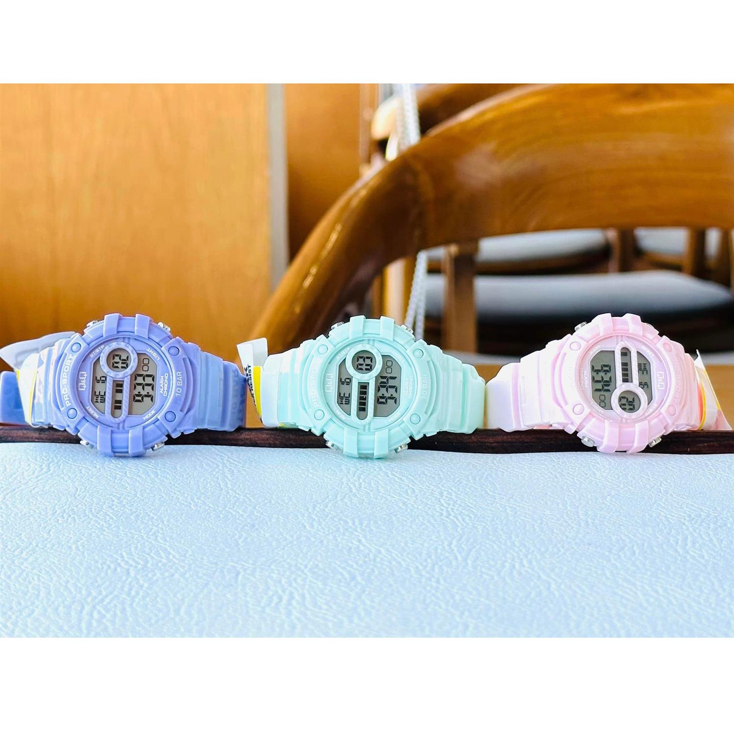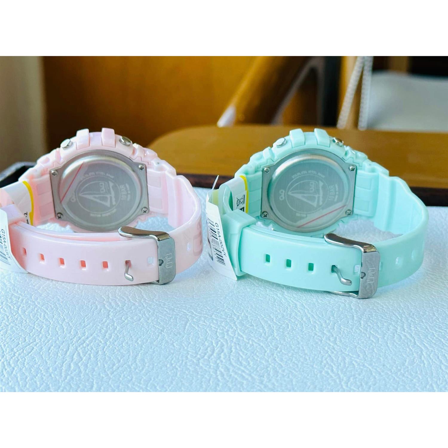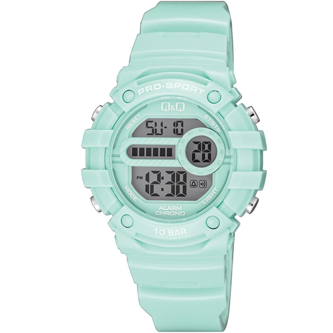ساعت مچی دخترانه کیو اند کیو QQ با طراحی روزانه بند سیلیکونی سبز و قاب گرد سبز و صفحه طوسی با نمایشگر دیجیتال و قابلیت داشتن کرنوگراف , روزهای هفته, روز و شب ,نور پشت صفحه, تقویم, زنگ هشدار و موتور ژاپنی با انرژی باطری و مقاوم در برابر آب تا عمق 100 متر به همراه یک سال گارانتی شرکت