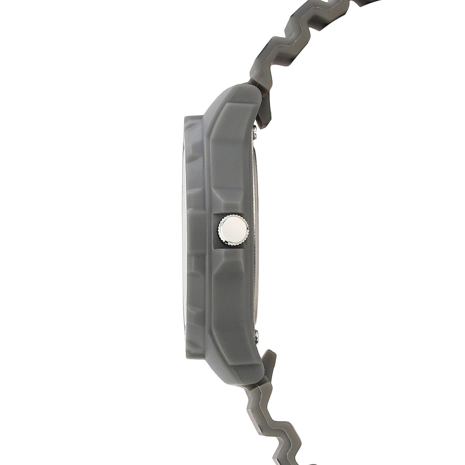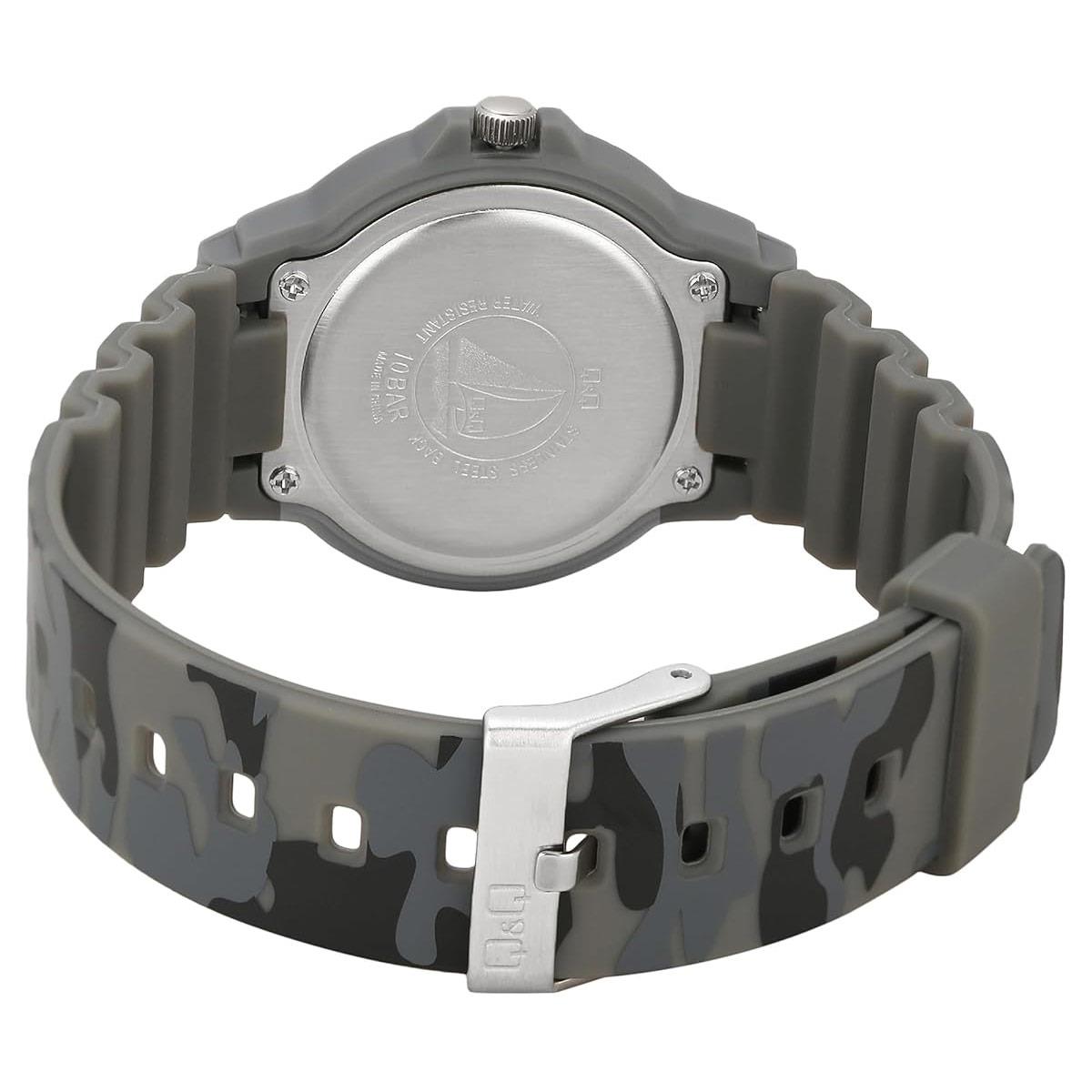 ساعت مچی کودک کیو اند کیو QQ با طراحی روزانه بند سیلیکونی طوسی و قاب گرد طوسی رنگ و صفحه طوسی و موتور ژاپنی با انرژی باطری و مقاوم در برابر آب تا عمق 100 متر به همراه گارانتی شرکتی