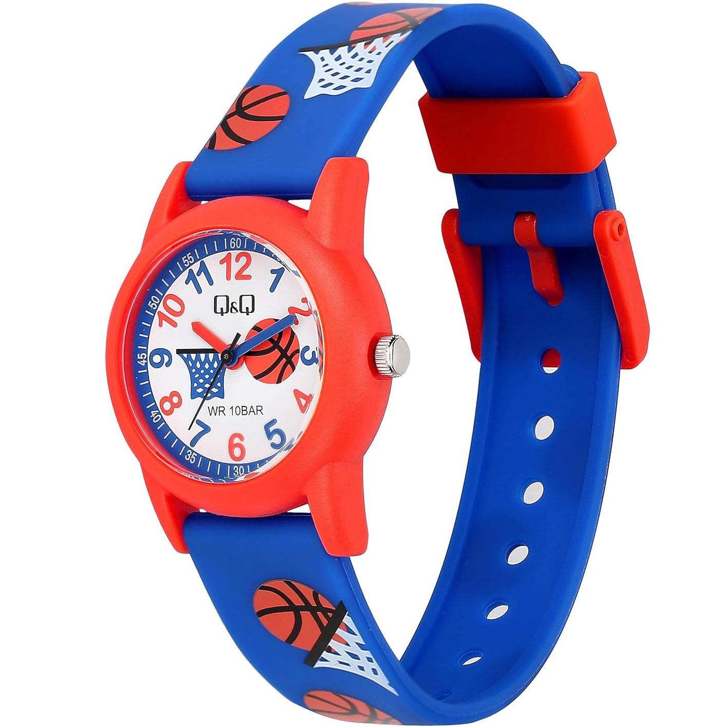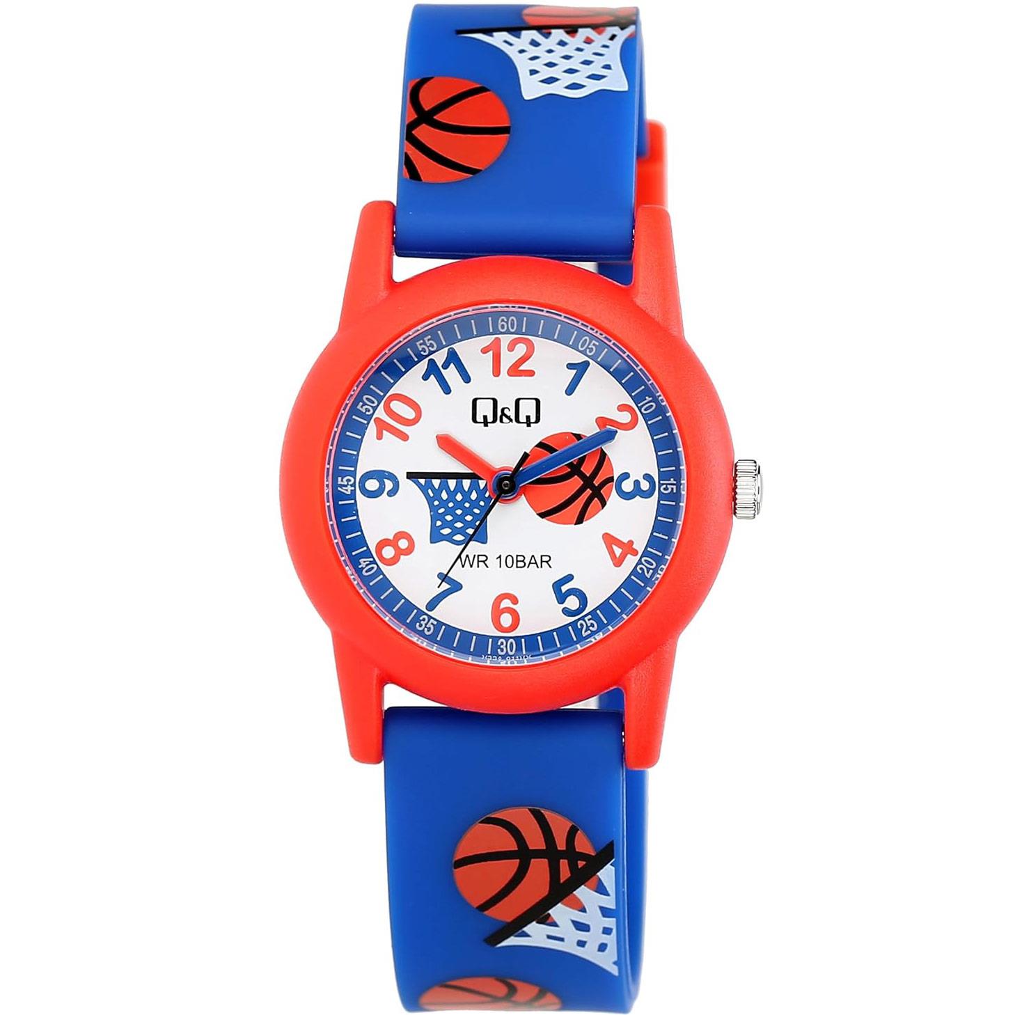 ساعت مچی پسرانه کیو اند کیو QQ با طراحی روزانه بند سیلیکونی چند رنگ و قاب گرد قرمز و صفحه گرد چند رنگ و موتور ژاپنی با انرژی باطری و مقاوم در برابر آب تا عمق 100 متر به همراه گارانتی شرکتی