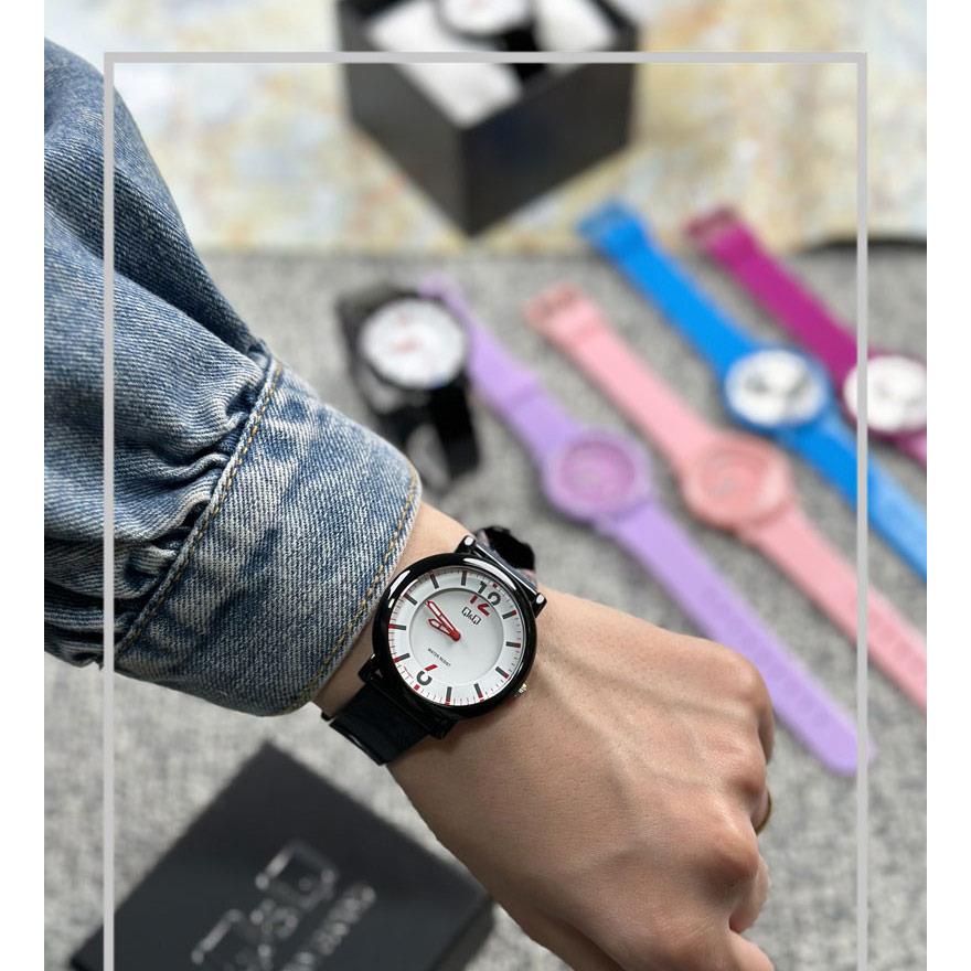 ساعت مچی زنانه کیو اند کیو QQ با طراحی روزانه بند سیلیکونی و قاب مشکی و صفحه گرد سفید و موتور ژاپنی با انرژی باطری و مقاوم در برابر آب تا عمق 30 متر به همراه یک سال گارانتی شرکتی