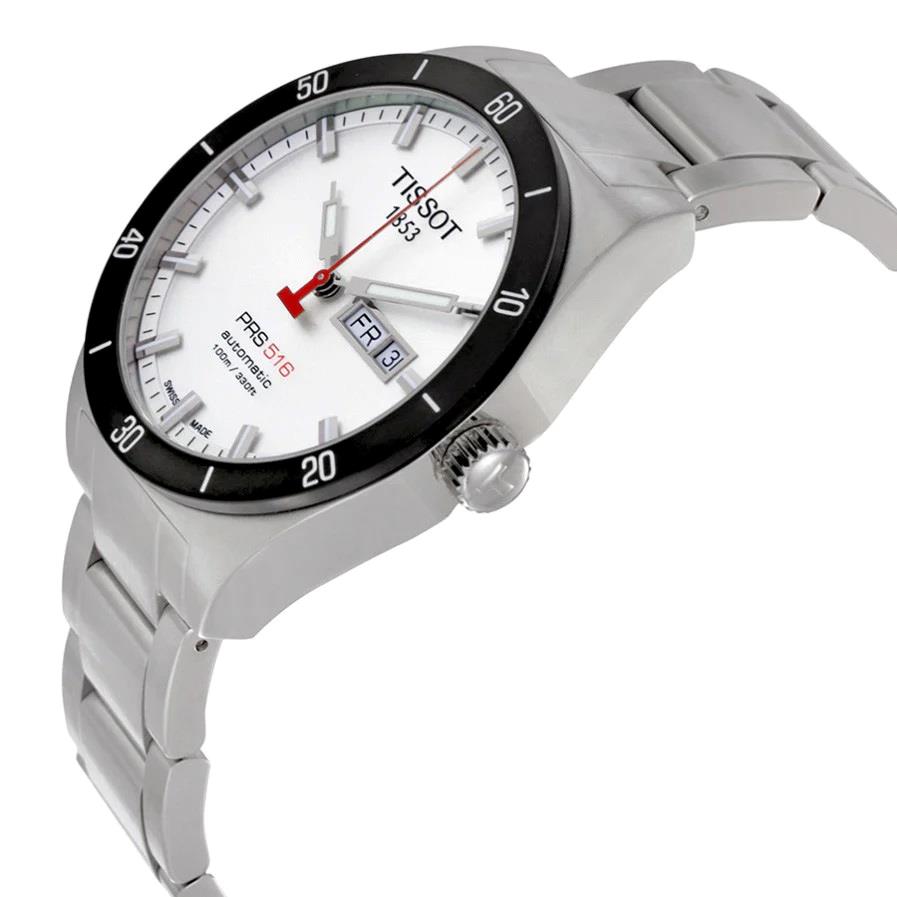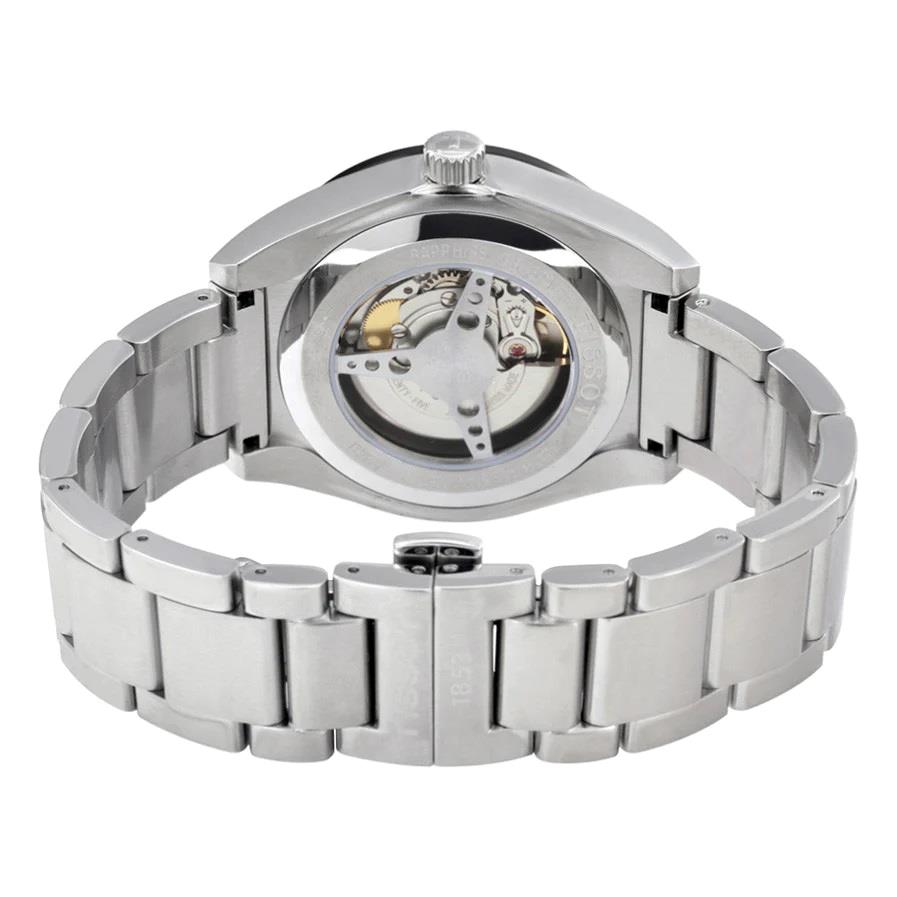 ساعت مچی مردانه TISSOT با طراحی کلاسیک بند استیل با قاب گرد استیل مشکی و صفحه گرد نقره ای با نمایشگر عقربه ای با شیشه ضد خراش و موتور اتوماتیک سوییسی با قابلیت شب نما/ روزهای هفته / تقویم و انرژی مکانیکی و مقاوم در برابر آب تا عمق 100 متر به همراه گارانتی بین المللی
