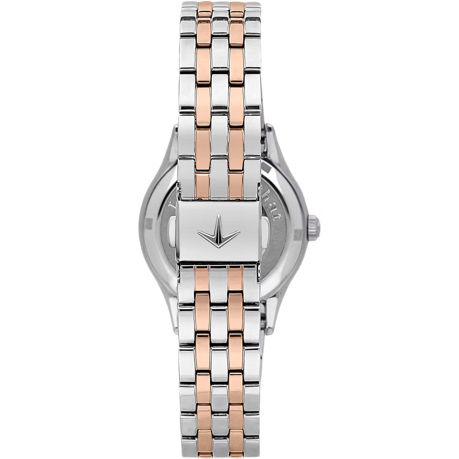 ساعت مچی زنانه لوسین روشا lucian rochat با طراحی کلاسیک بند استیل مسی / قاب استیل مسی و صفحه گرد سفید با قابلیت داشتن تقویم و شیشه ضد خراش و موتور ژاپنی با انرژی باتری و مقاوم در برابر آب تا عمق 30 متر به همراه گارانتی بین المللی