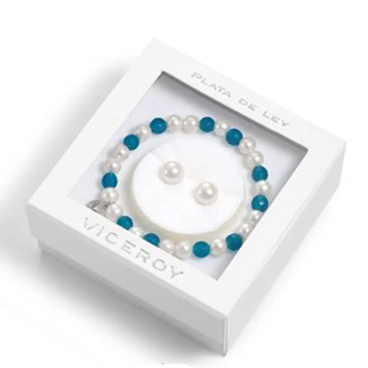 نیم ست زنانه  ویسروی viceroy با طراحی روزانه دستبند مرواریدی به رنگ آبی سفید با اویز نقره و گوشواره میخی سفید به همراه گارانتی اصالت کالا