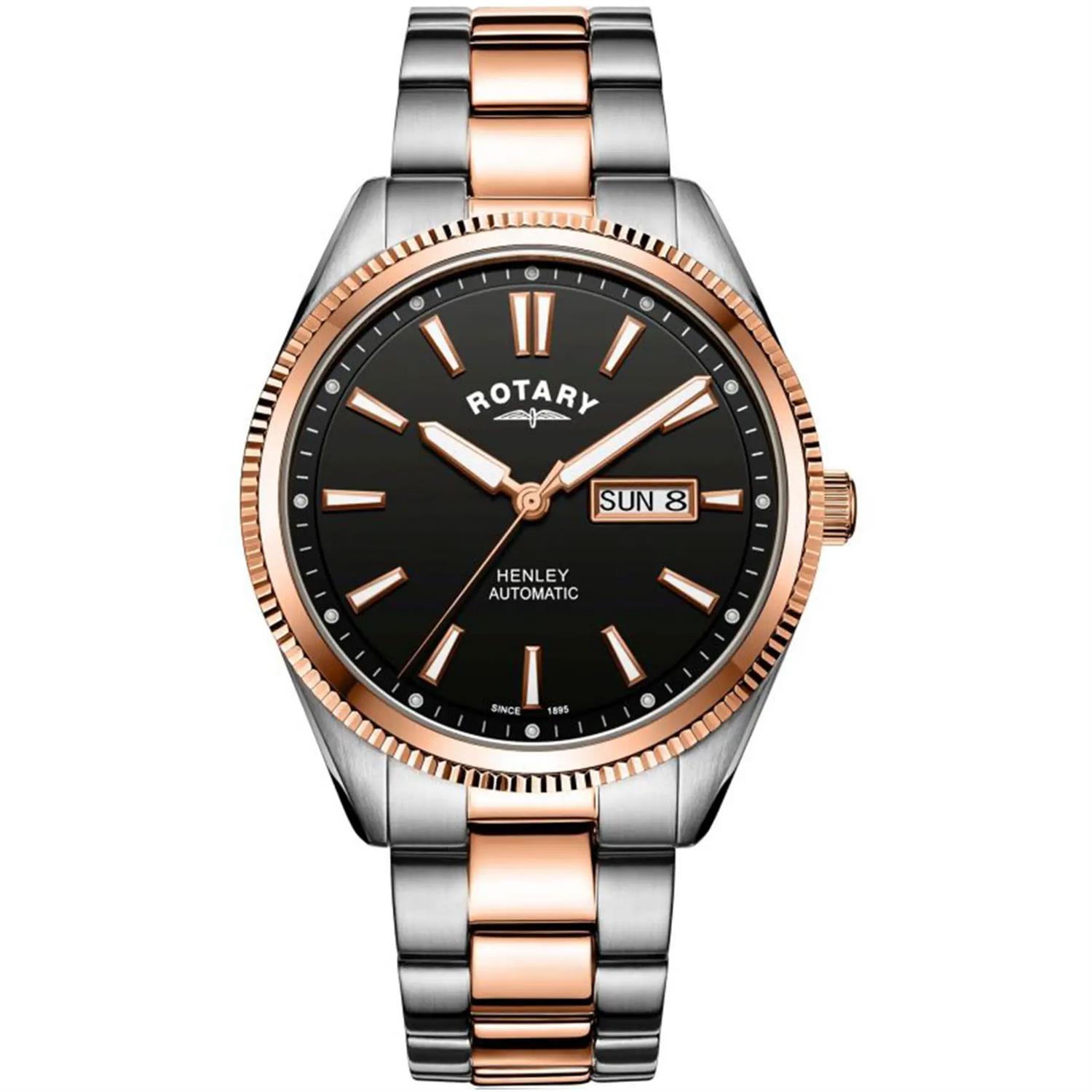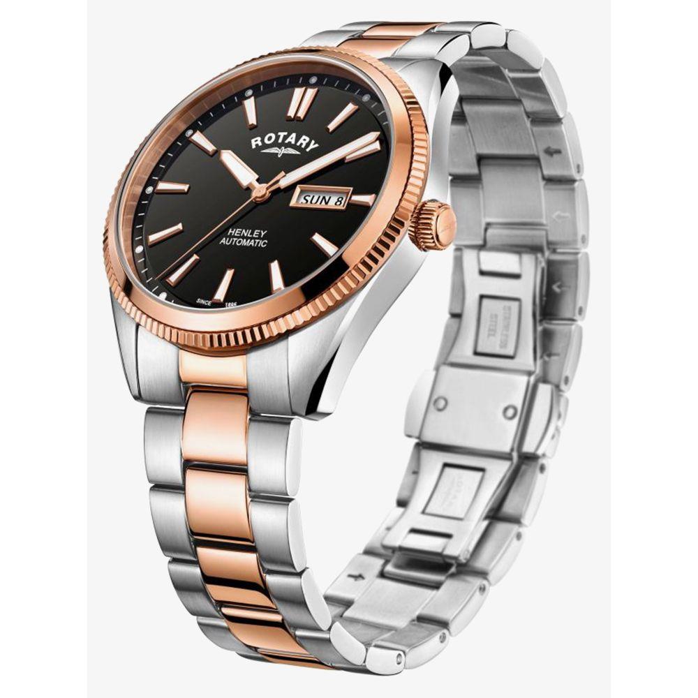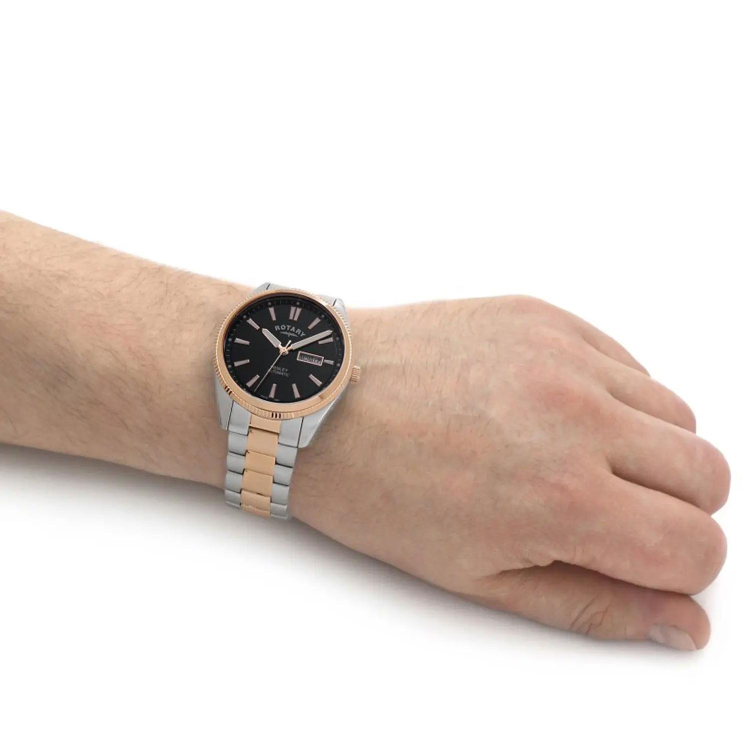 ساعت مچی مردانه روتاری rotary با طراحی روزانه بند استیل مسی با قاب مسی استیل و صفحه گرد مشکی و شیشه ضد خراش با قابلیت داشتن تقویم /شب نما/روزوشب و موتوراتوماتیک ژاپنی با انرژی مکانیکی و مقاوم در برابر آب تا عمق 100 متر به همراه گارانتی بین المللی