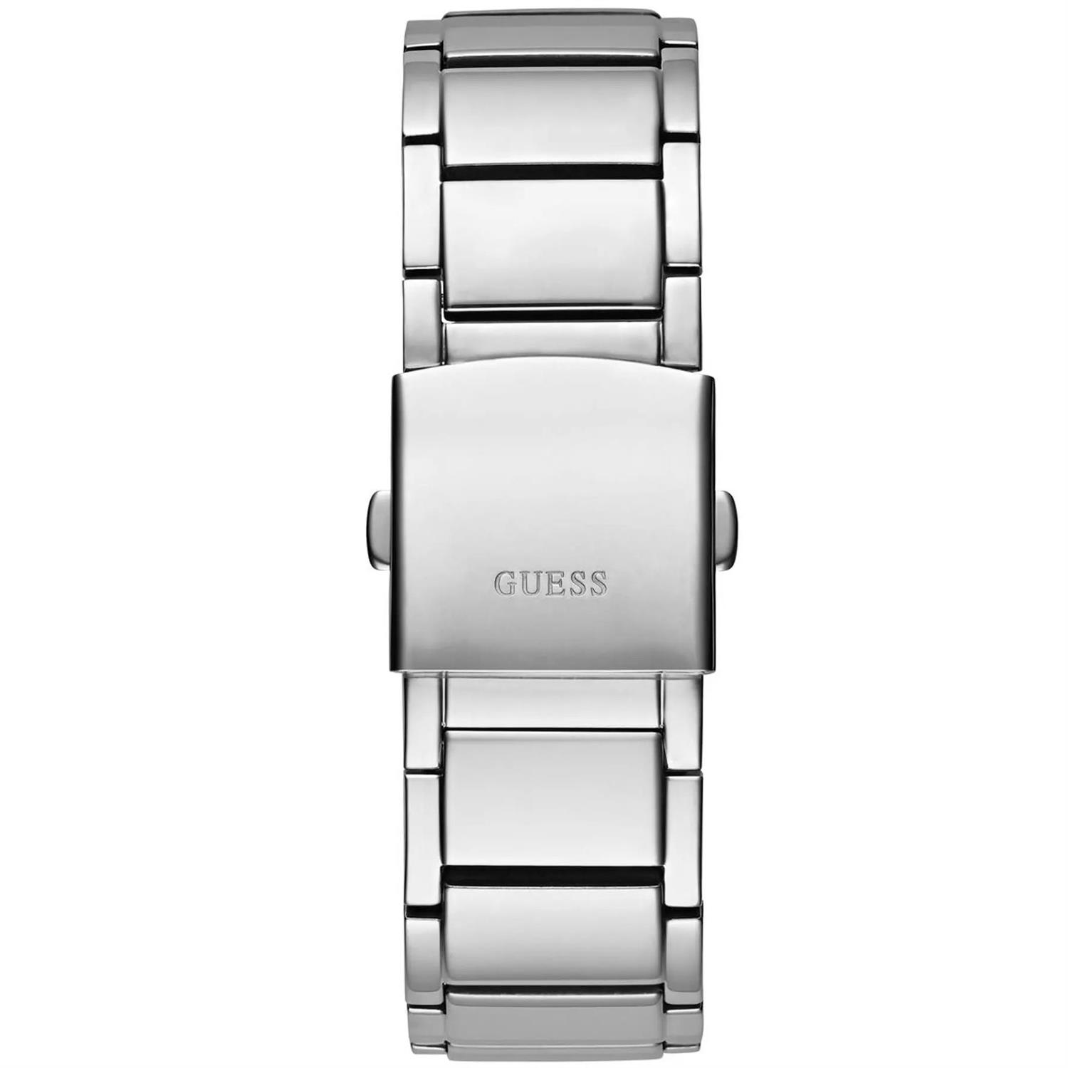 ساعت مچی مردانه گس GUESS با طراحی روزانه بند استیل و قاب استیل و صفحه گرد سرمه ای و موتور ژاپنی با انرژی باتری با قابلیت داشتن شب نما / تقویم / روز و شب / روزهای هفته و مقاومت در برابر آب تا عمق 50 متر به همراه دو سال گارانتی بین المللی