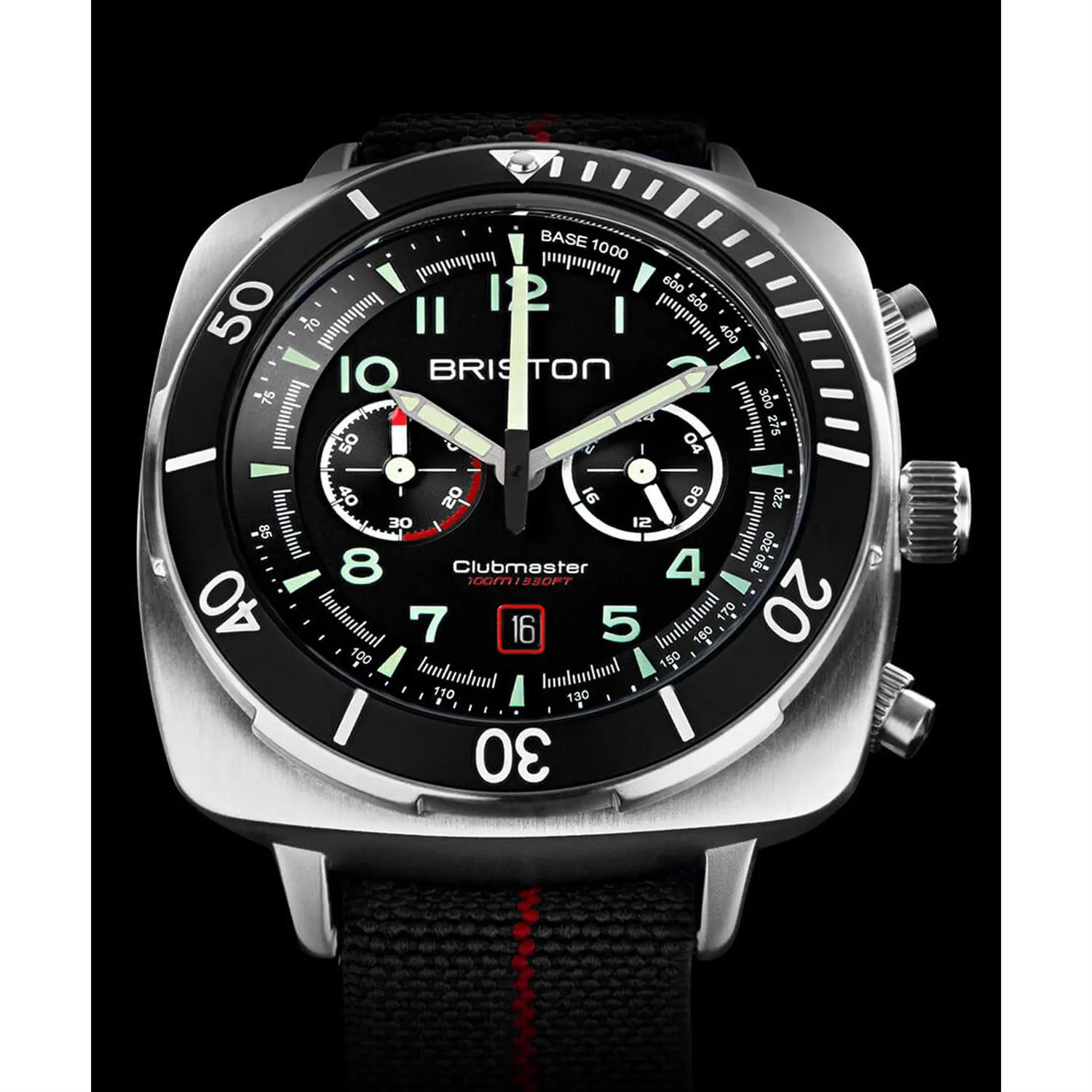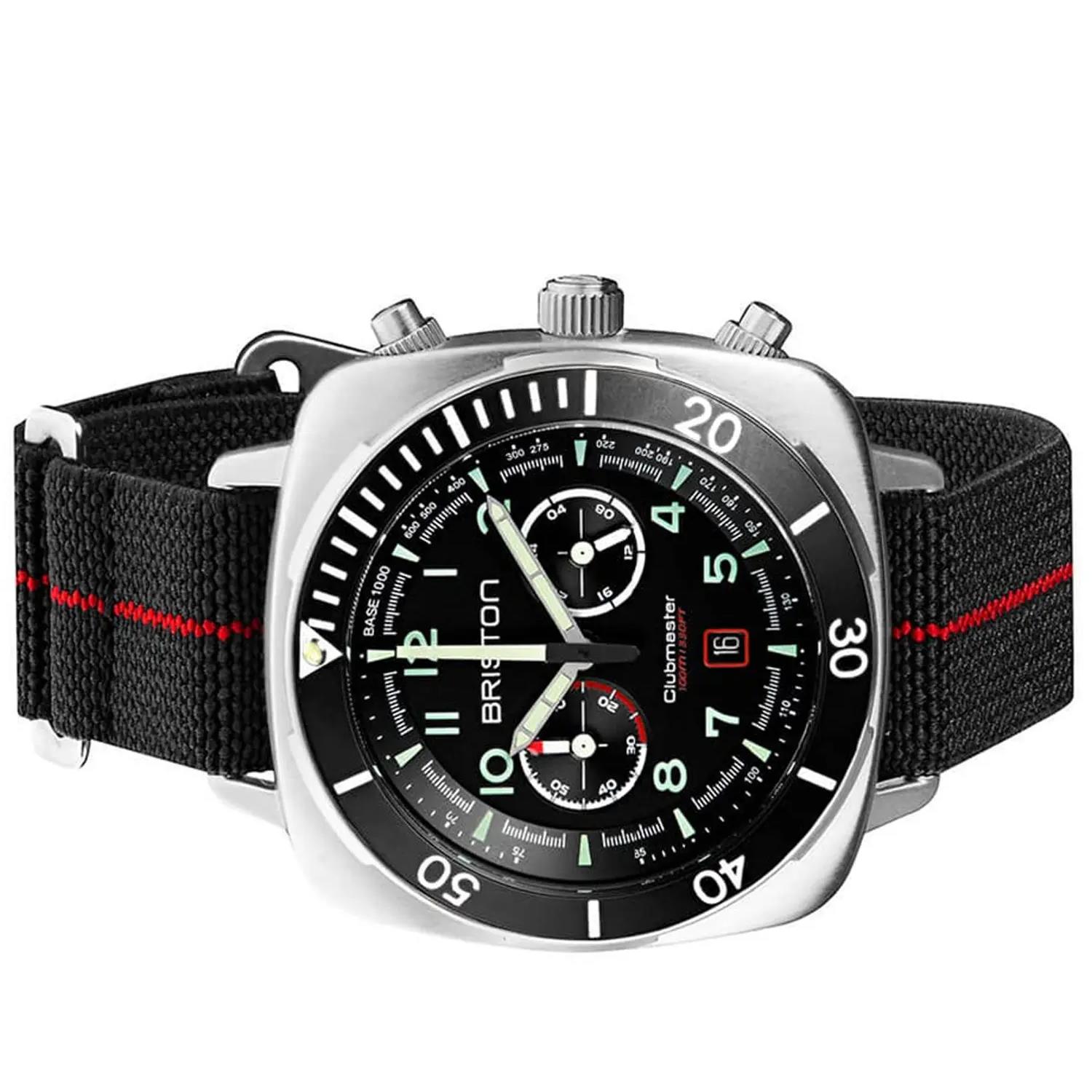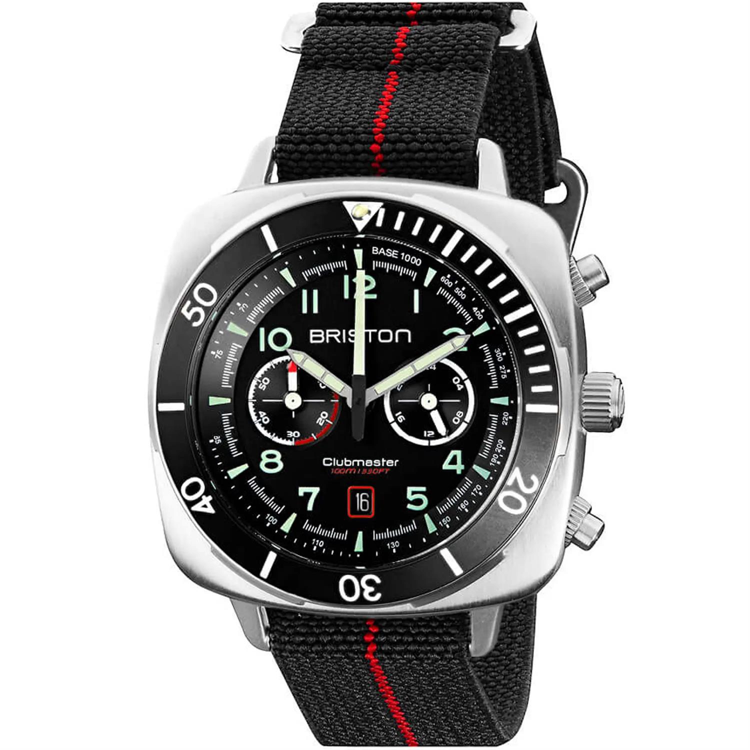 ساعت مچی مردانه بریستون briston با طراحی اسپرت بند برزنتی مشکی/ قرمز با قاب استیل مشکی و صفحه گرد مشکی با موتور ژاپنی و انرژی باتری و قابلیت داشتن تقویم / شب نما / کرنوگراف / روز و شب و مقاوم در برابر آب تا عمق 100متر به همراه گارانتی بین المللی