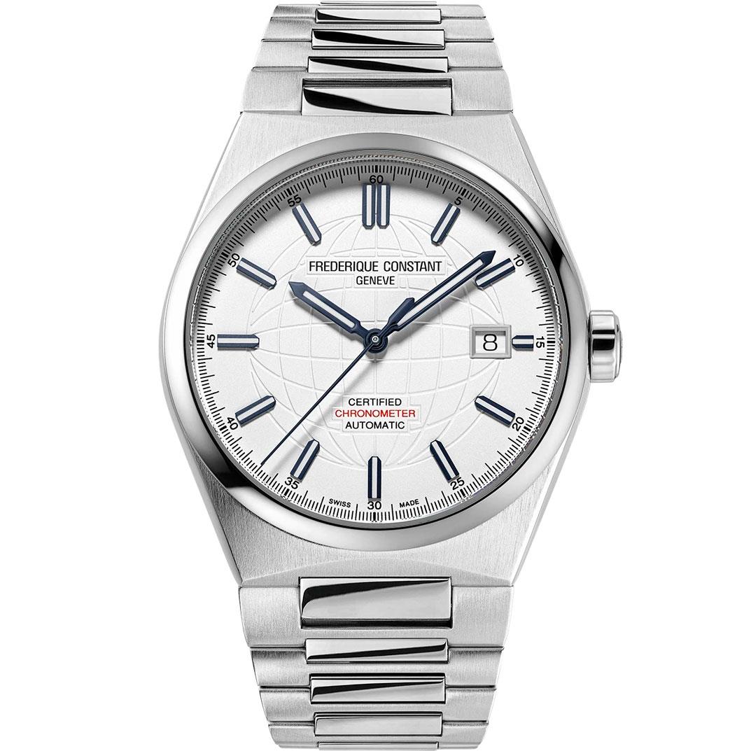 ساعت مچی مردانه FREDERIQUE CONSTANT با طراحی کلاسیک بند استیل با قاب استیل و صفحه سفید با شیشه ضد خراش و قابلیت داشتن تقویم /شب نما و موتور اتوماتیک سوییسی با انرژی مکانیکی و مقاوم در برابر آب تا عمق 100 متر به همراه دو سال گارانتی بین المللی