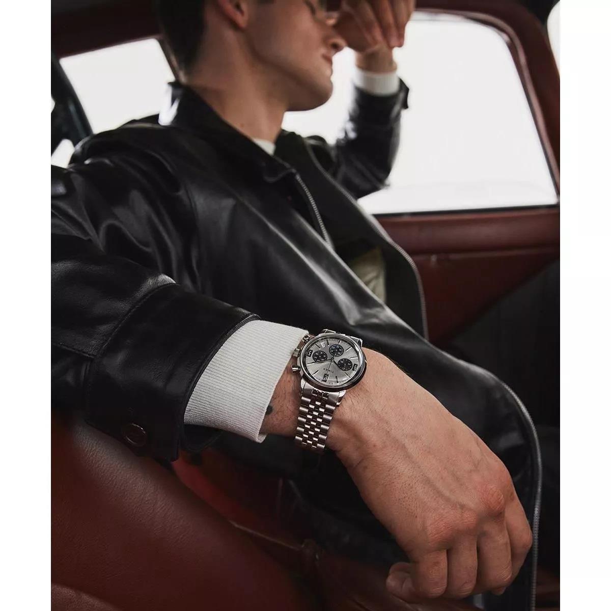 ساعت مچی مردانه تایمکس timex با طراحی اسپرت بند استیل و قاب گرد استیل با صفحه گرد نقره ای و قابلیت داشتن شب نما / کرنوگراف/ تقویم / زه تاچی متر و موتور ژاپنی با انرژی باطری و مقاوم در برابر آب تا عمق 50 متر به همراه گارانتی بین المللی