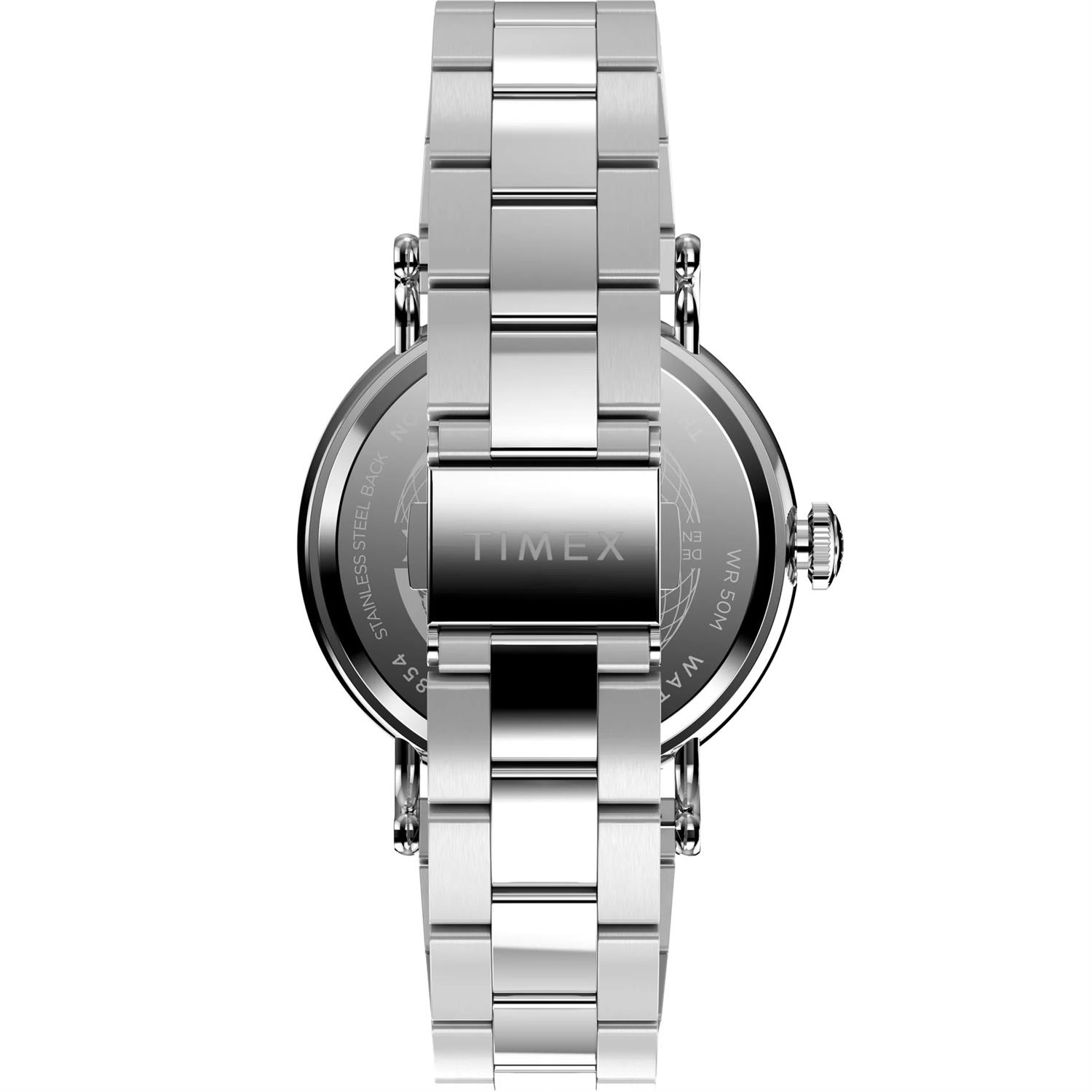 ساعت مچی مردانه تایمکس timex با طراحی اسپرت بند استیل و قاب فلزی با صفحه گرد سرمه ای  قابلیت داشتن شب نما و موتور ژاپنی با انرژی باطری و مقاوم در برابر آب تا عمق 50 متر به همراه گارانتی بین المللی