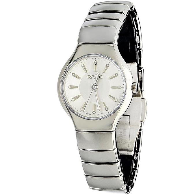 ساعت مچی زنانه رادو RADO با طراحی اسپرت بند سرامیکی طوسی و قاب سرامیکی طوسی و صفحه گرد نقره ای با قابلیت داشتن شب نما و موتور سوییسی با انرژی باتری و مقاوم در برابر آب تا عمق 30 متر به همراه گارانتی بین المللی
