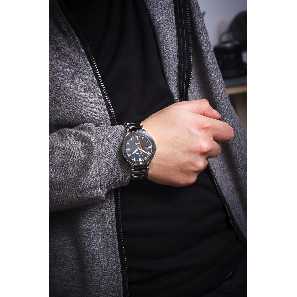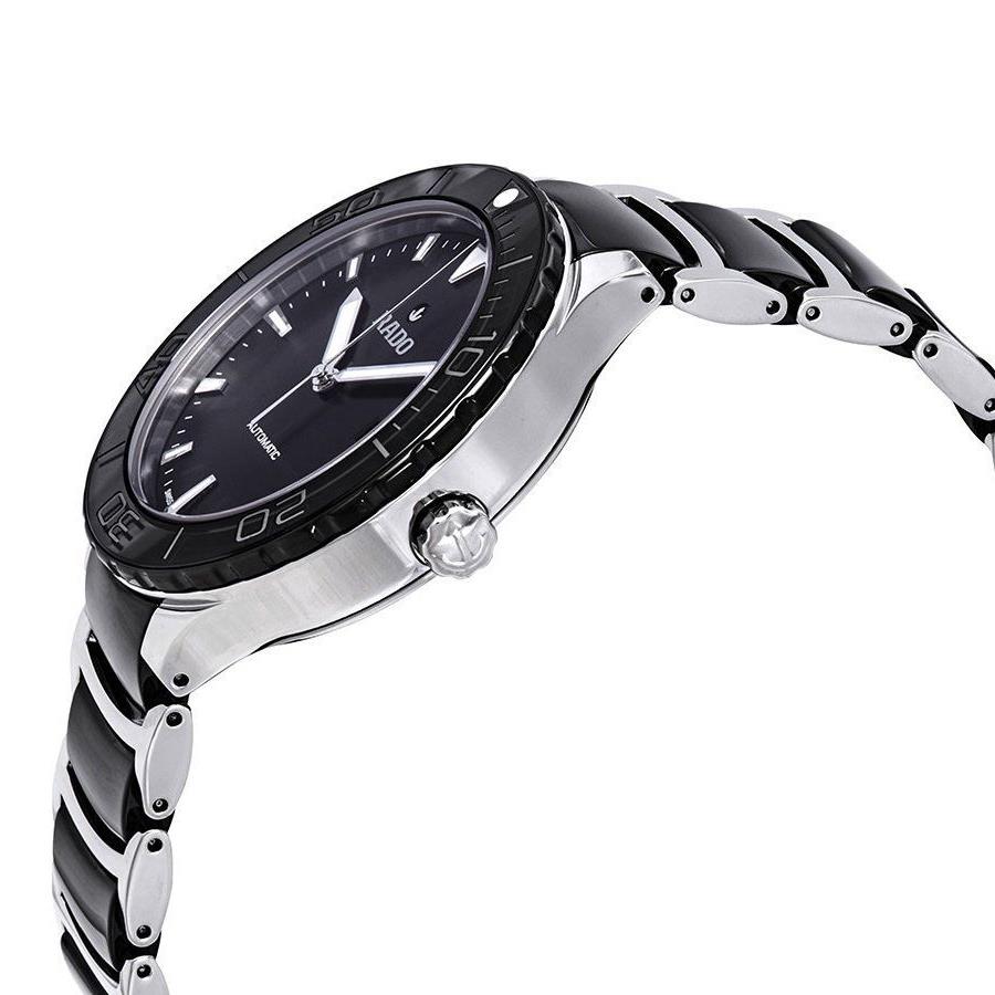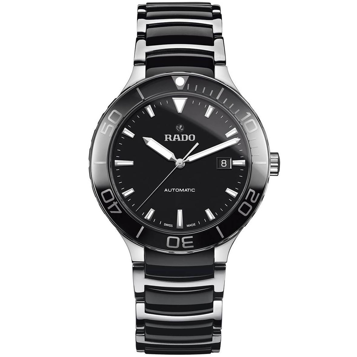 ساعت مچی مردانه رادو RADO با طراحی کلاسیک بند استیل سرامیک با قفل کلیپسی و قاب گرد مشکی استیل و صفحه گرد مشکی با شیشه ضد خراش و قابلیت داشتن تقویم / شب نما / زه چرخان و موتوراتوماتیک سوییسی با انرژی مکانیکی و مقاوم در برابر آب تا عمق 100 متر به همراه گارانتی بین المللی