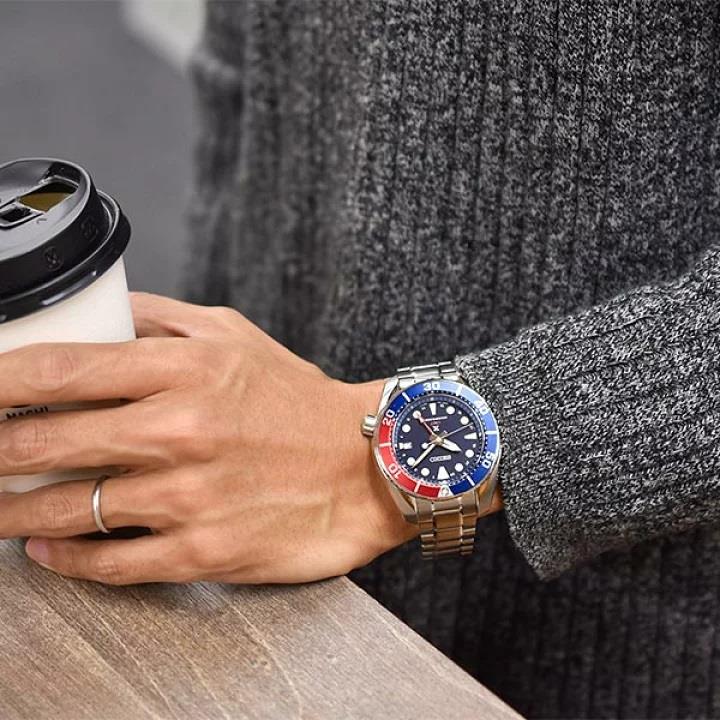 ساعت مچی مردانه سیکو SEIKO با طراحی روزانه بند استیل با قاب استیل سرمه ای قرمز و صفحه گرد سرمه ای با شیشه ضد خراش و ضد انعکاس و قابلیت داشتن تقویم/ شب نما / دو زمانه/ زه چرخان و موتور ژاپنی با انرژی خورشیدی و مقاوم در برابر آب تا عمق 200 متر به همراه گارانتی بین المللی