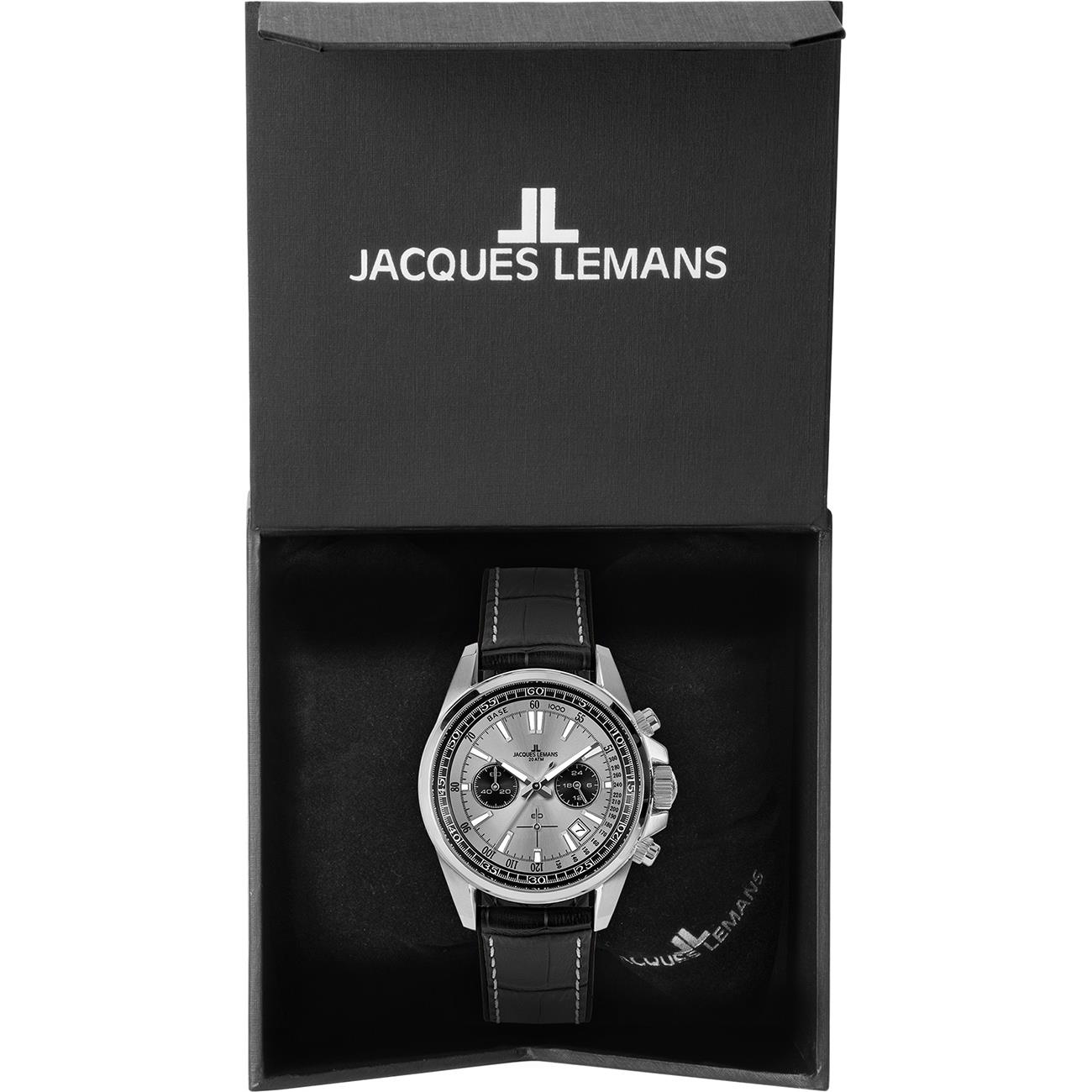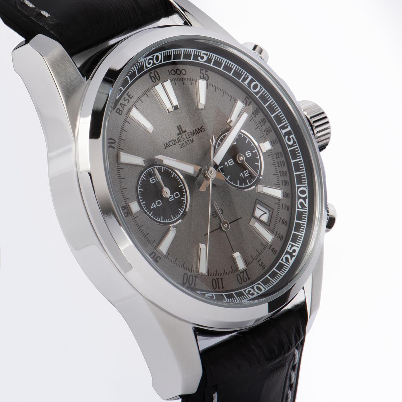 ساعت مچی مردانه ژاک لمن jacques lemans با طراحی روزانه بند مشکی و قاب استیل و صفحه گرد طوسی مشکی با قابلیت داشتن تقویم / شب نما / کرنوگراف / روز و شب با موتور ژاپنی و انرژی باتری و مقاومت در برابر آب تا عمق 200 متر به همراه گارانتی بین المللی