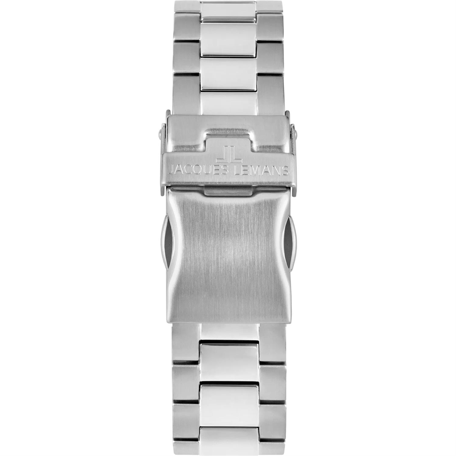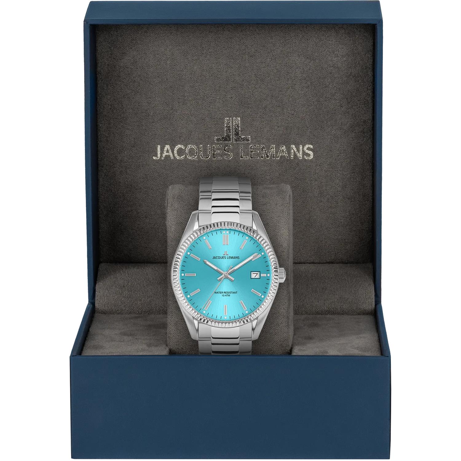 ساعت مچی مردانه  ژاک لمن jacques lemans با طراحی روزانه بند استیل و قاب استیل و صفحه گرد آبی با قابلیت داشتن تقویم , شب نما با موتور ژاپنی و انرژی باتری و مقاومت در برابر آب تا عمق 100 متر به همراه گارانتی بین المللی