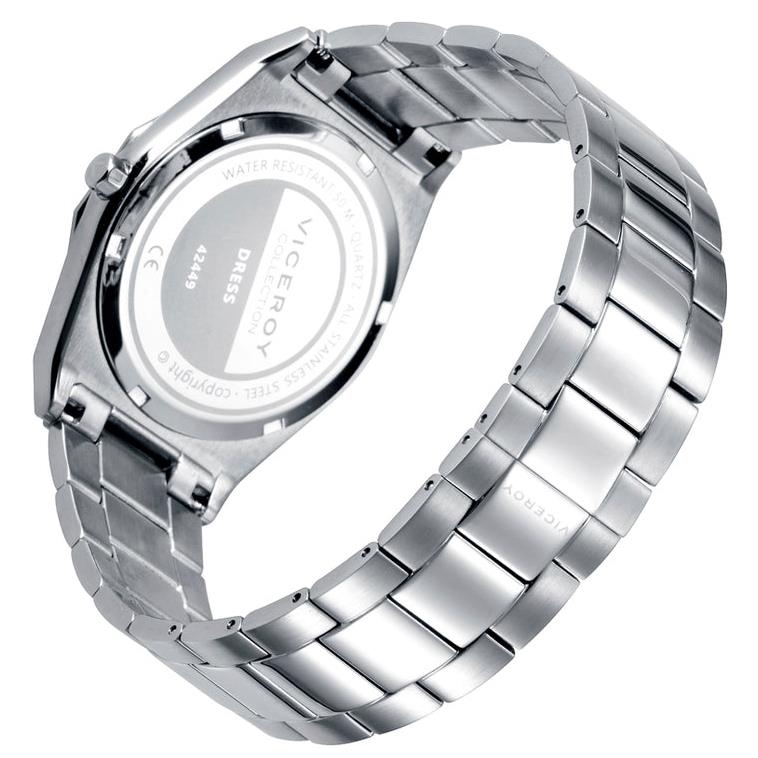 ساعت مچی مردانه ویسروی با طراحی روزانه بند استیل با قاب استیل و صفحه سفید با موتور ژاپنی و انرژی باتری و قابلیت داشتن شب نما / تقویم و مقاوم در برابر آب تا عمق 50 متر به همراه گارانتی بین المللی