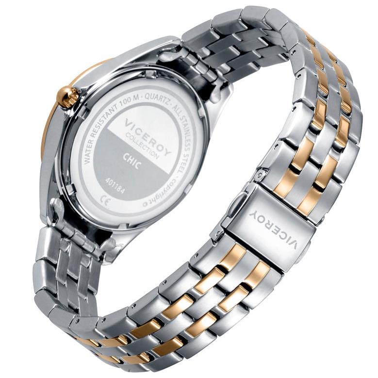 ساعت مچی زنانه ویسروی با طراحی روزانه بند استیل مسی با قاب دور نگین استیل مسی و صفحه گرد صورتی با قابلیت داشتن شب نما و موتور ژاپنی و انرژی باطری و مقاوم در برابر آب تا عمق 100 متر به همراه سال گارانتی بین المللی