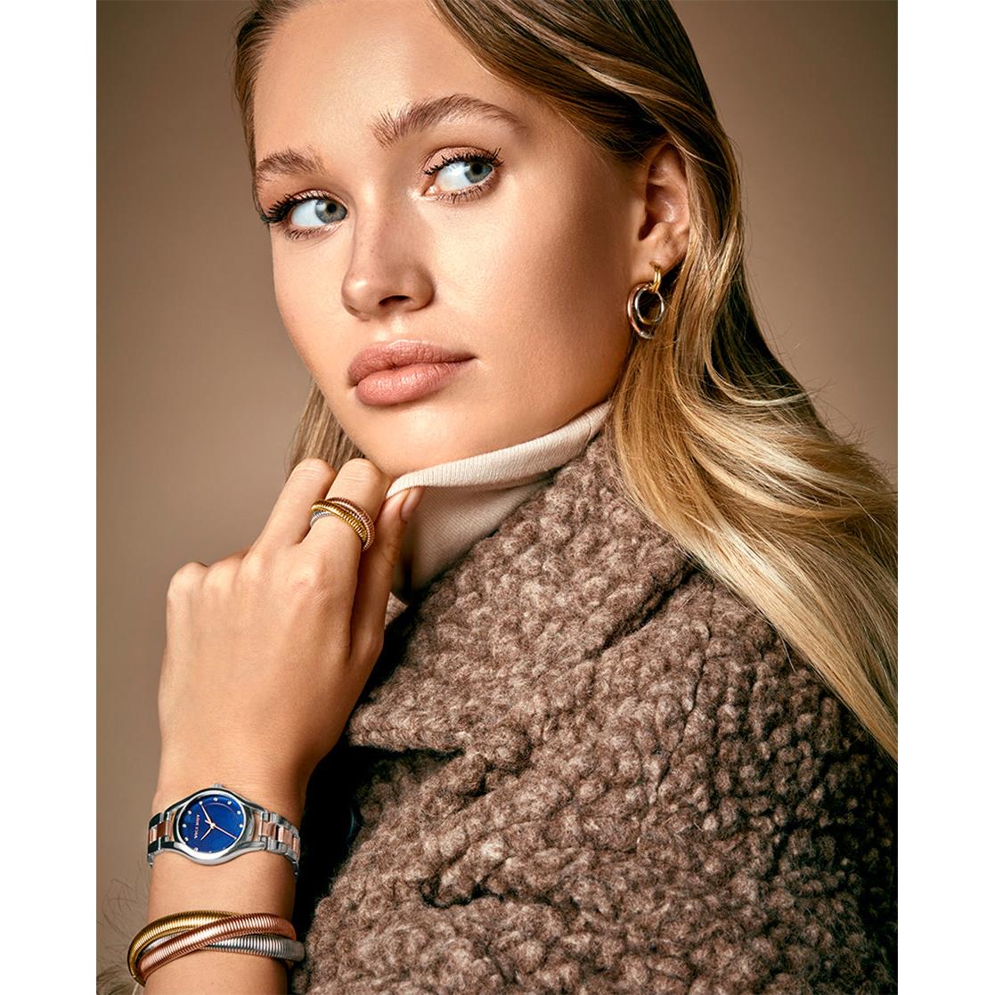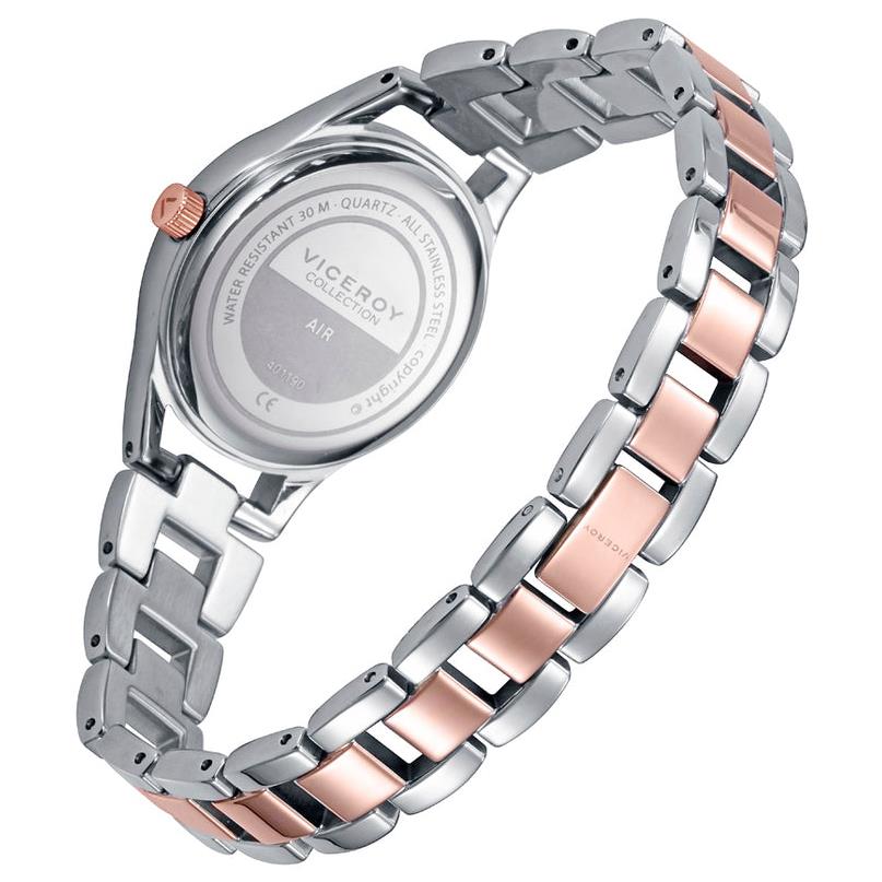 ساعت مچی زنانه ویسروی با طراحی روزانه بند استیل مسی با قاب استیل و صفحه نگین دار سرمه ای با موتور ژاپنی و انرژی باطری و مقاوم در برابر آب تا عمق 30 متر به همراه سال گارانتی بین المللی