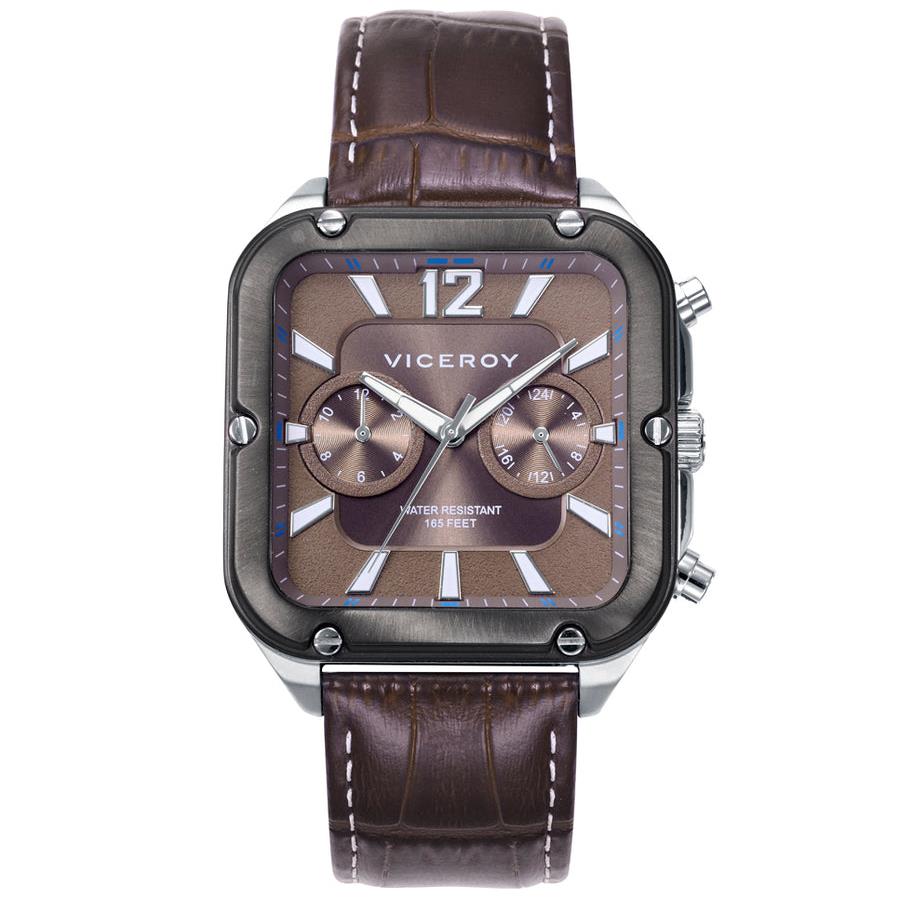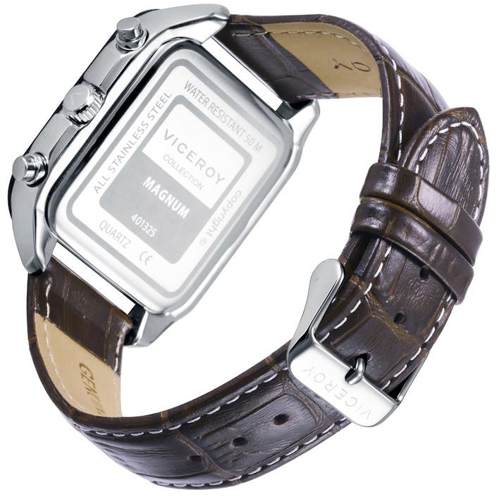 ساعت مچی مردانه ویسروی با طراحی روزانه بند چرمی قهوه ای با قاب مربع استیل طوسی و صفحه مربع قهوه ای با موتور ژاپنی و انرژی باطری و قابلیت داشتن روز و شب / شب نما و مقاوم در برابر آب تا عمق 50 متر به همراه سال گارانتی بین المللی