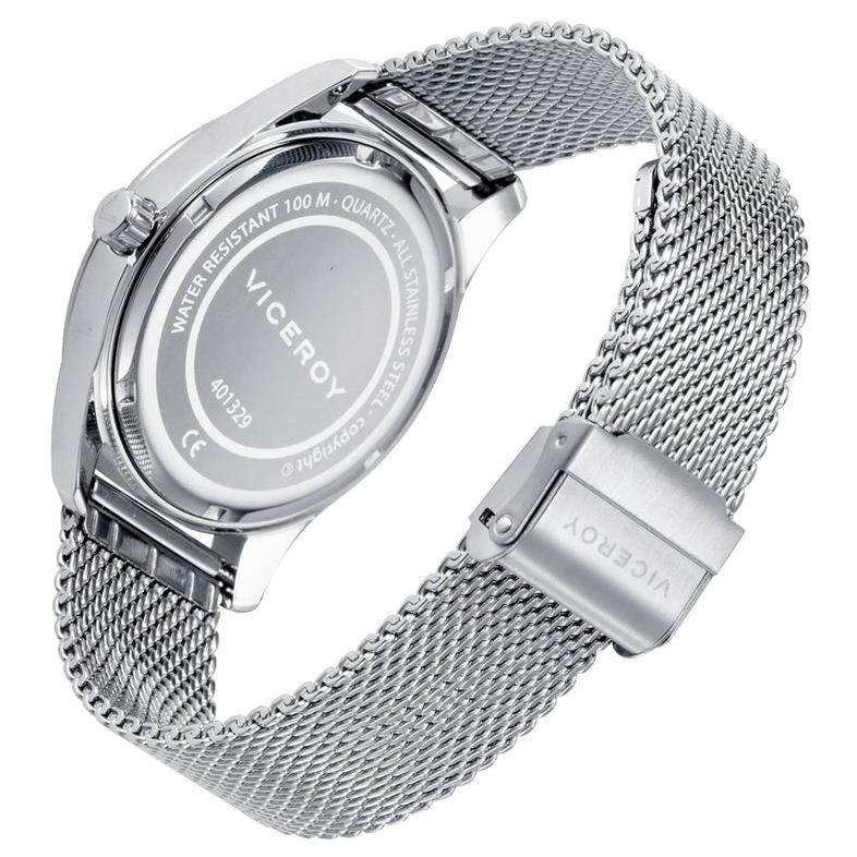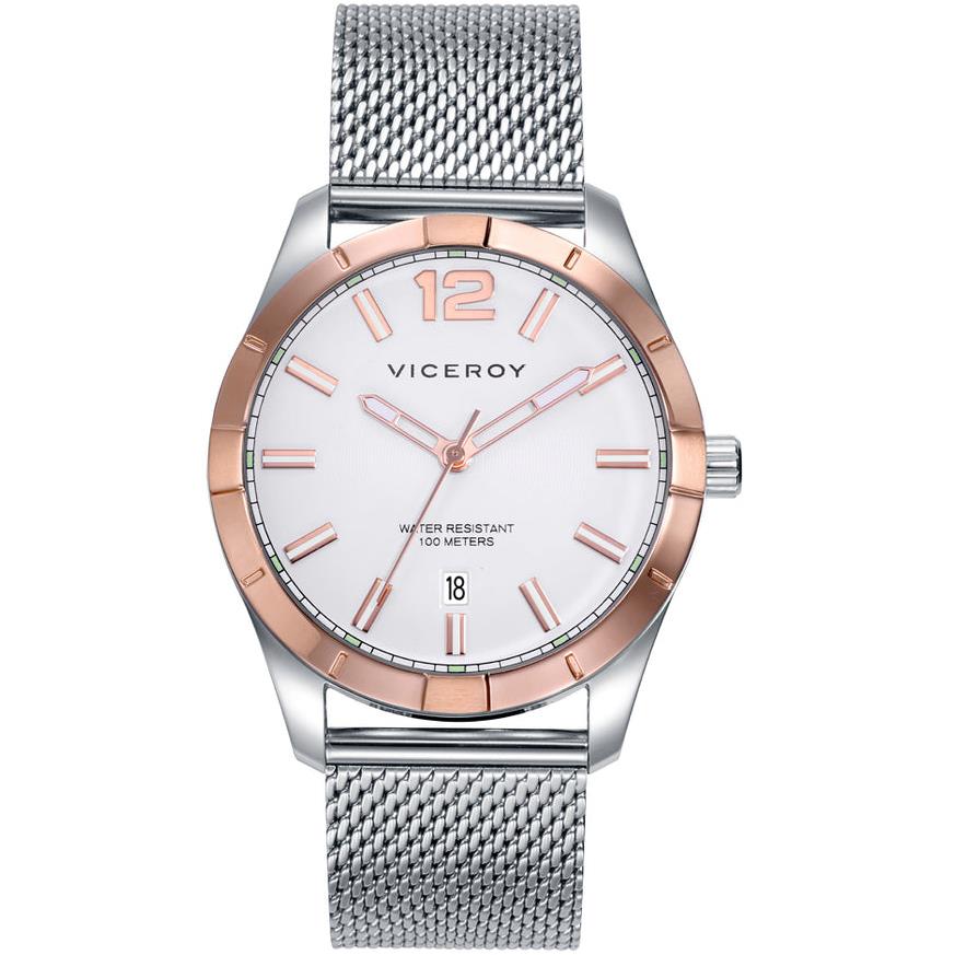 ساعت مچی مردانه ویسروی با طراحی روزانه بند استیل با قاب استیل مسی و صفحه سفید با موتور ژاپنی و انرژی باطری و قابلیت داشتن تقویم / شب نما و مقاوم در برابر آب تا عمق 100 متر به همراه سال گارانتی بین المللی