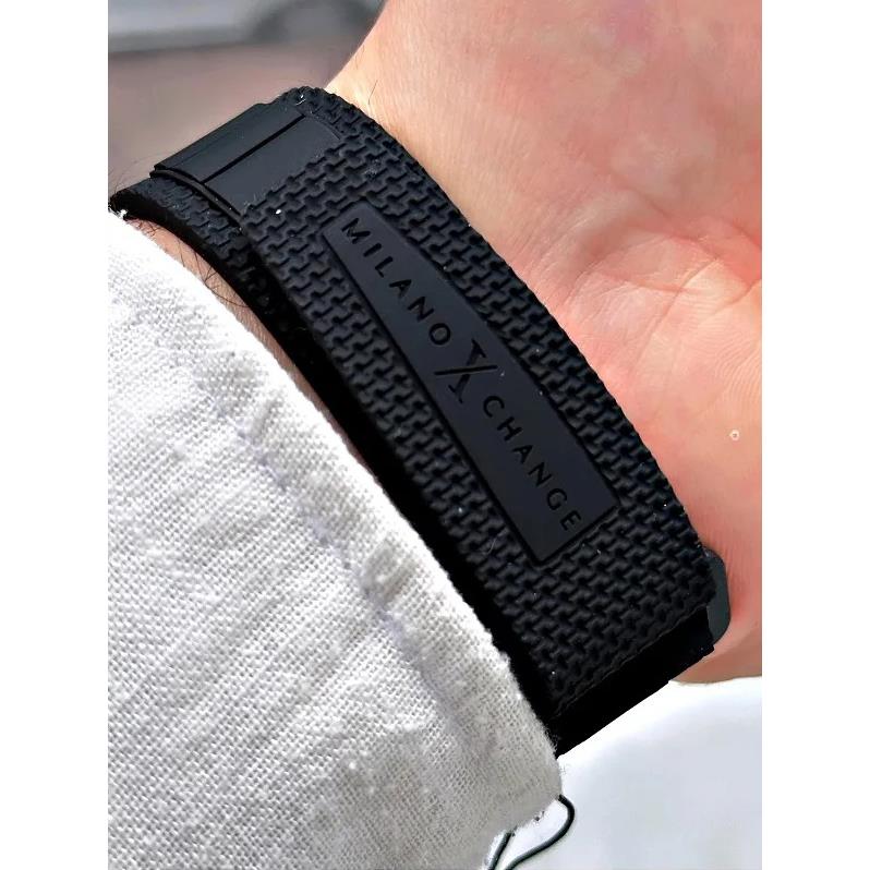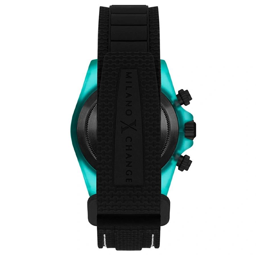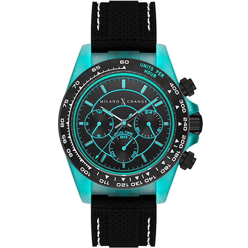 ساعت مچی مردانه میلانواکسچنج milanoxchange با طراحی روزانه بند سیلیکونی مشکی/ قاب گرد آبی مشکی و صفحه گرد مشکی با قابلیت داشتن شب نما / کرنوگراف/ دو زمانه و موتور ژاپنی و انرژی باتری و مقاوم در برابر آب تا عمق 50 متر به همراه گارانتی بین المللی