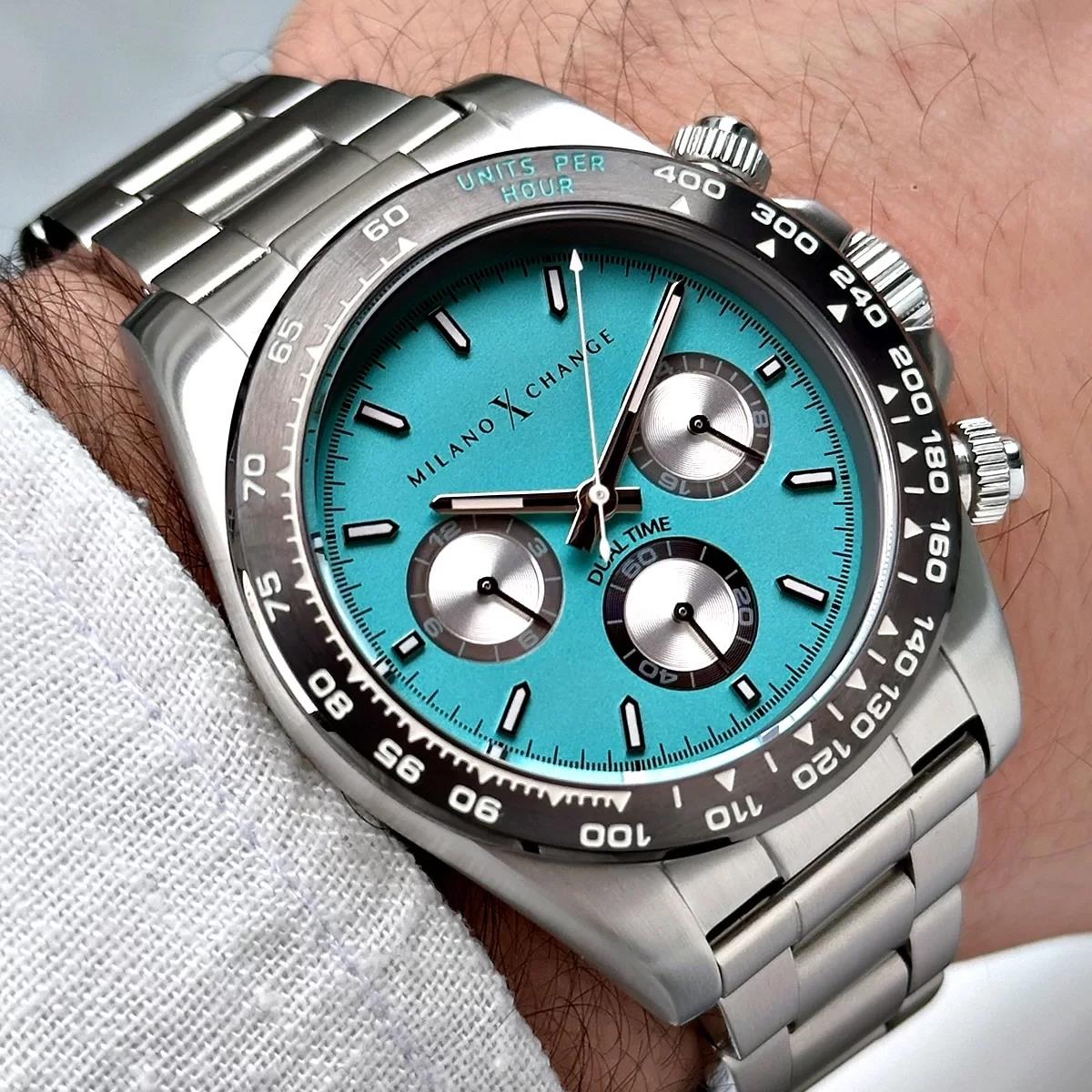 ساعت مچی مردانه میلانواکسچنج milanoxchange با طراحی روزانه بند استیل/ قاب گرد استیل مشکی و صفحه گرد دو رنگ با قابلیت داشتن شب نما / کرنوگراف/ دو زمانه و موتور ژاپنی و انرژی باتری و مقاوم در برابر آب تا عمق 50 متر به همراه گارانتی بین المللی