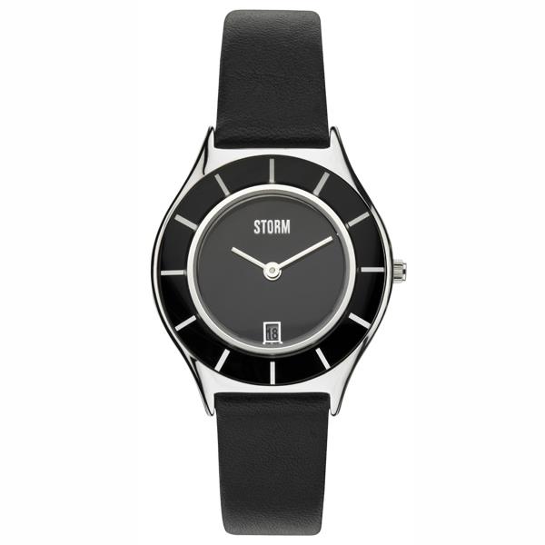ساعت مچی زنانه/دخترانه استورم STORM با طراحی کلاسیک بند چرم مشکی و قاب گرد و موتور با کاربرد تقویم به اسم SLIMRIM BLACK به همراه دو سال گارانتی بین المللی شرکت آرمان گالری ساعت مچی استورم | ساعت استورم | STORM ST 47198/BK