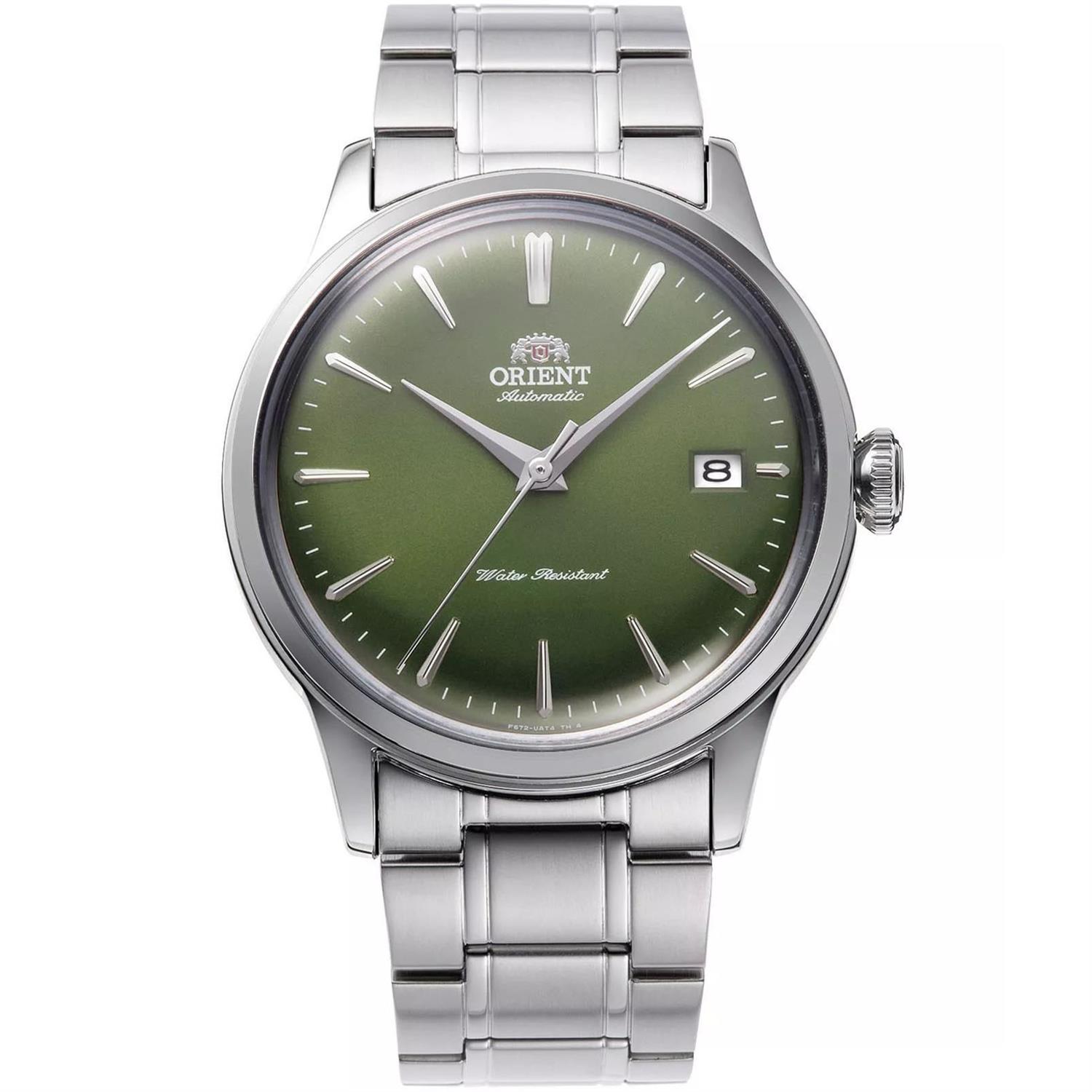 ساعت مچی مردانه اورینت orient با طراحی روزانه بند استیل و قاب استیل و صفحه گرد سبز با قابلیت داشتن  تقویم و موتور اتوماتیک ژاپنی با انرژی مکانیکی و مقاومت در برابر آب تا عمق 30 متر به همراه  گارانتی بین المللی