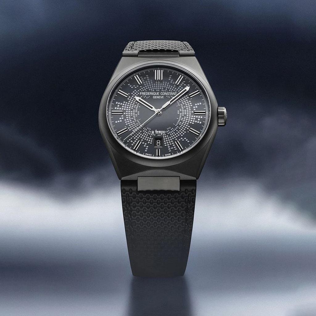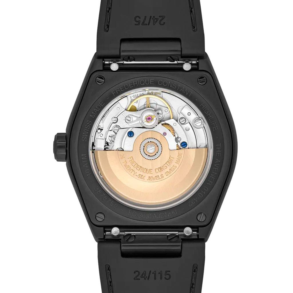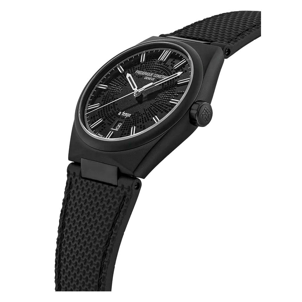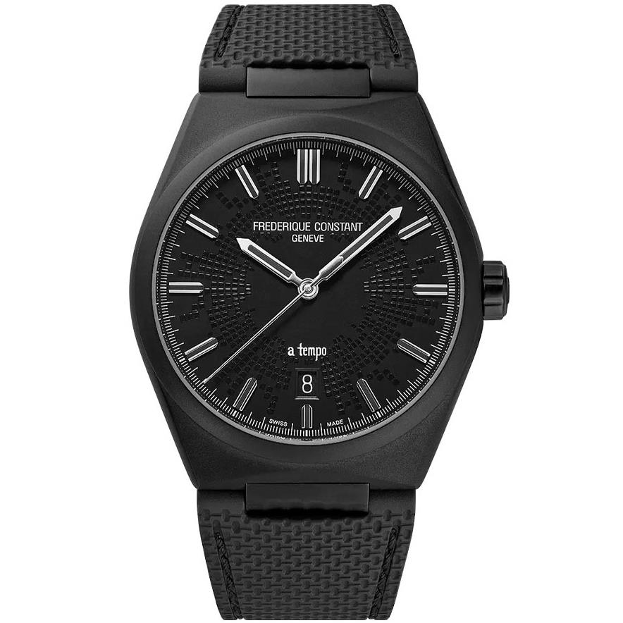 ساعت مچی مردانه FREDERIQUE CONSTANT با طراحی روزانه بند سیلیکونی با قاب فلزی مشکی و صفحه گرد مشکی با شیشه ضد خراش و قابلیت داشتن تقویم ,شب نما و موتور اتوماتیک سوییسی با انرژی مکانیکی و مقاوم در برابر آب تا عمق 100 متر به همراه دو سال گارانتی بین المللی
