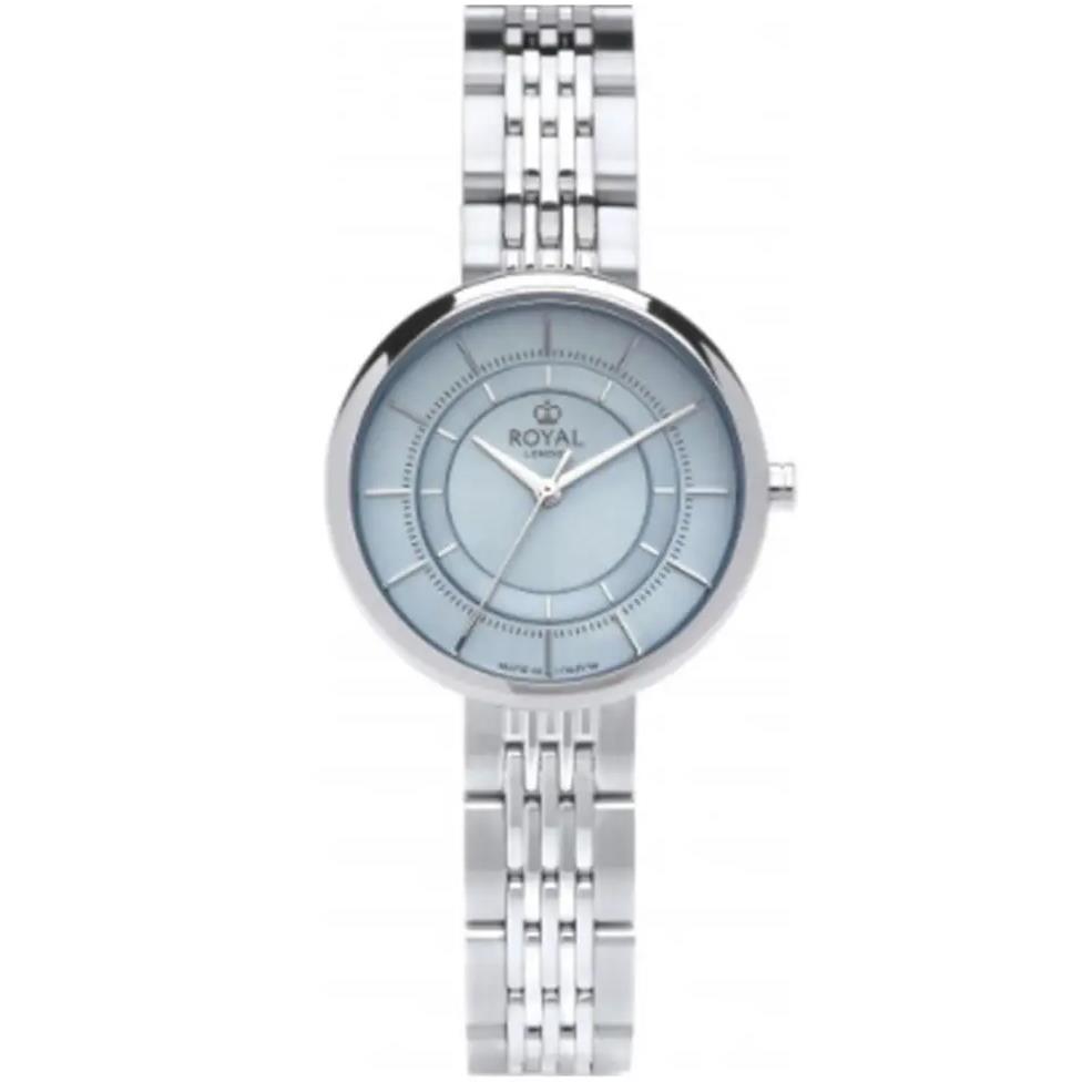 ساعت مچی زنانه ROYAL LONDON رویال لندن با طراحی روزانه بند استیل  و قاب استیل و صفحه گرد آبی و موتور ژاپنی با انرژی باتری و مقاومت در برابر آب تا عمق 30 متر به همراه گارانتی بین المللی