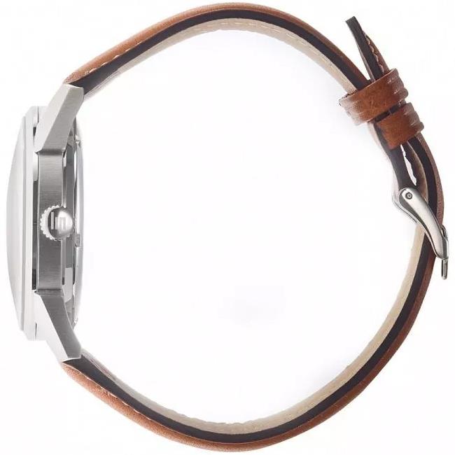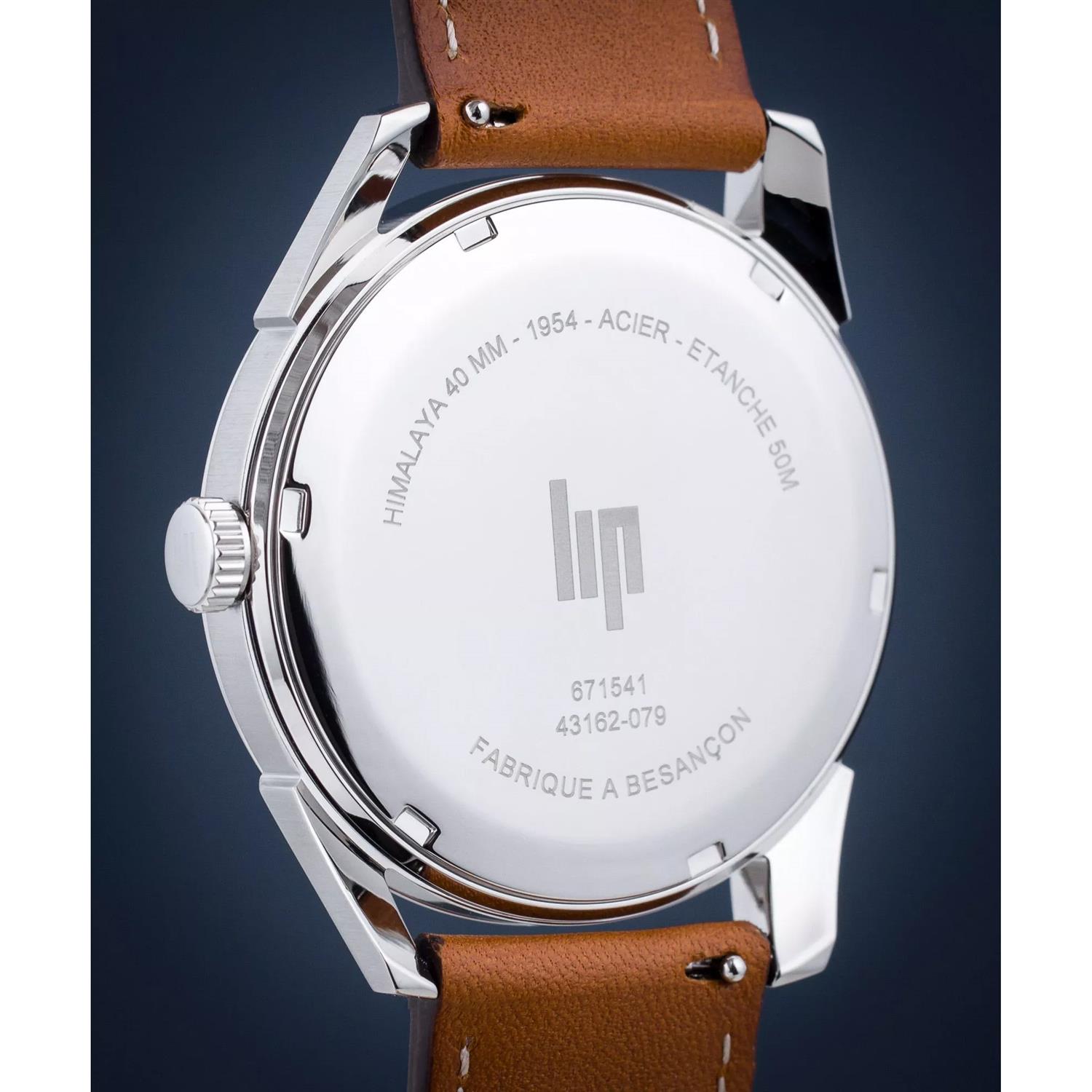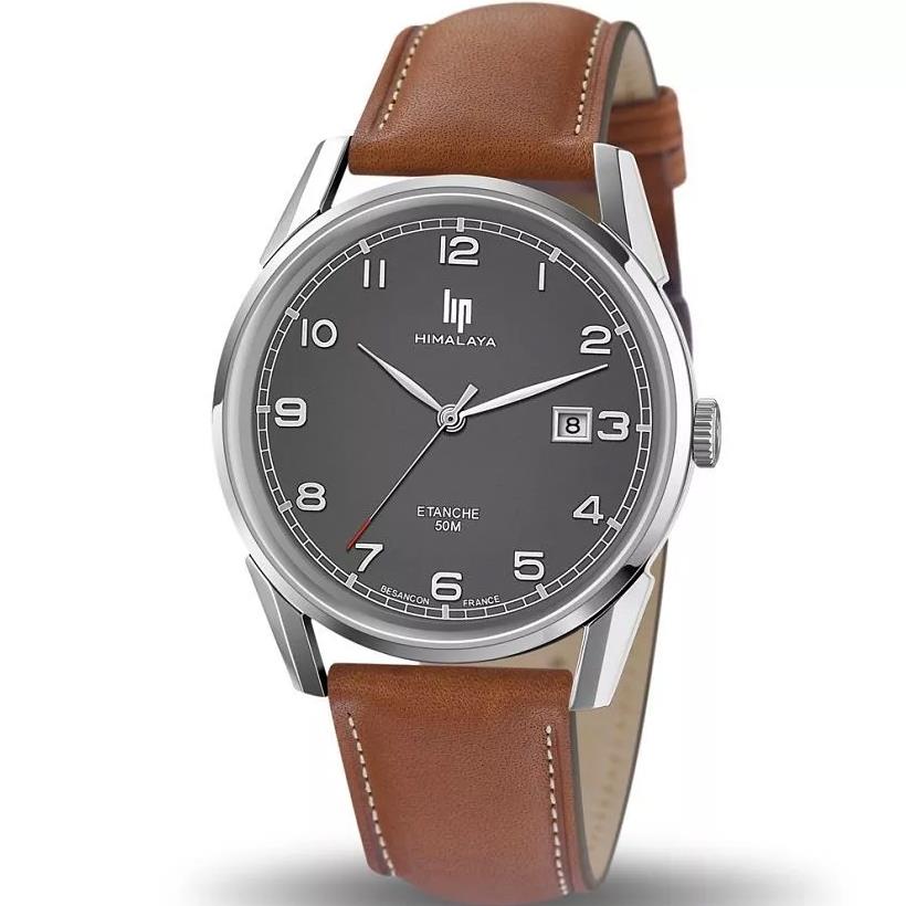 ساعت مچی مردانه لیپ lip با طراحی روزانه بند چرمی قهوه ای و قاب استیل و صفحه گرد طوسی و قابلیت داشتن  تقویم و موتور ژاپنی با انرژی باتری و مقاوم در برابر آب تا عمق 50 متر به همراه دوسال گارانتی بین المللی