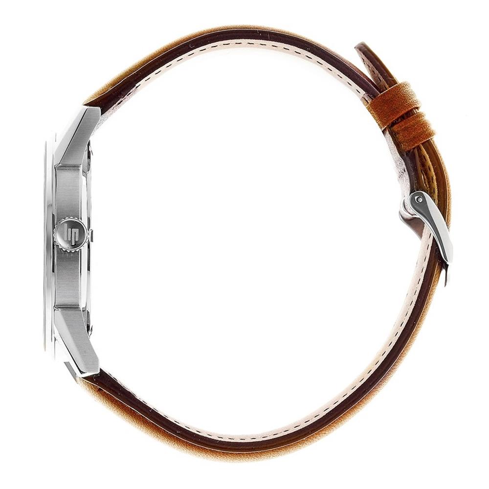 ساعت مچی مردانه لیپ lip با طراحی روزانه بند چرمی قهوه ای و قاب استیل و صفحه گرد سرمه ای و قابلیت داشتن  شب نما / زیرثانیه و موتور ژاپنی با انرژی باتری و مقاوم در برابر آب تا عمق 50 متر به همراه دوسال گرانتی بین المللی
