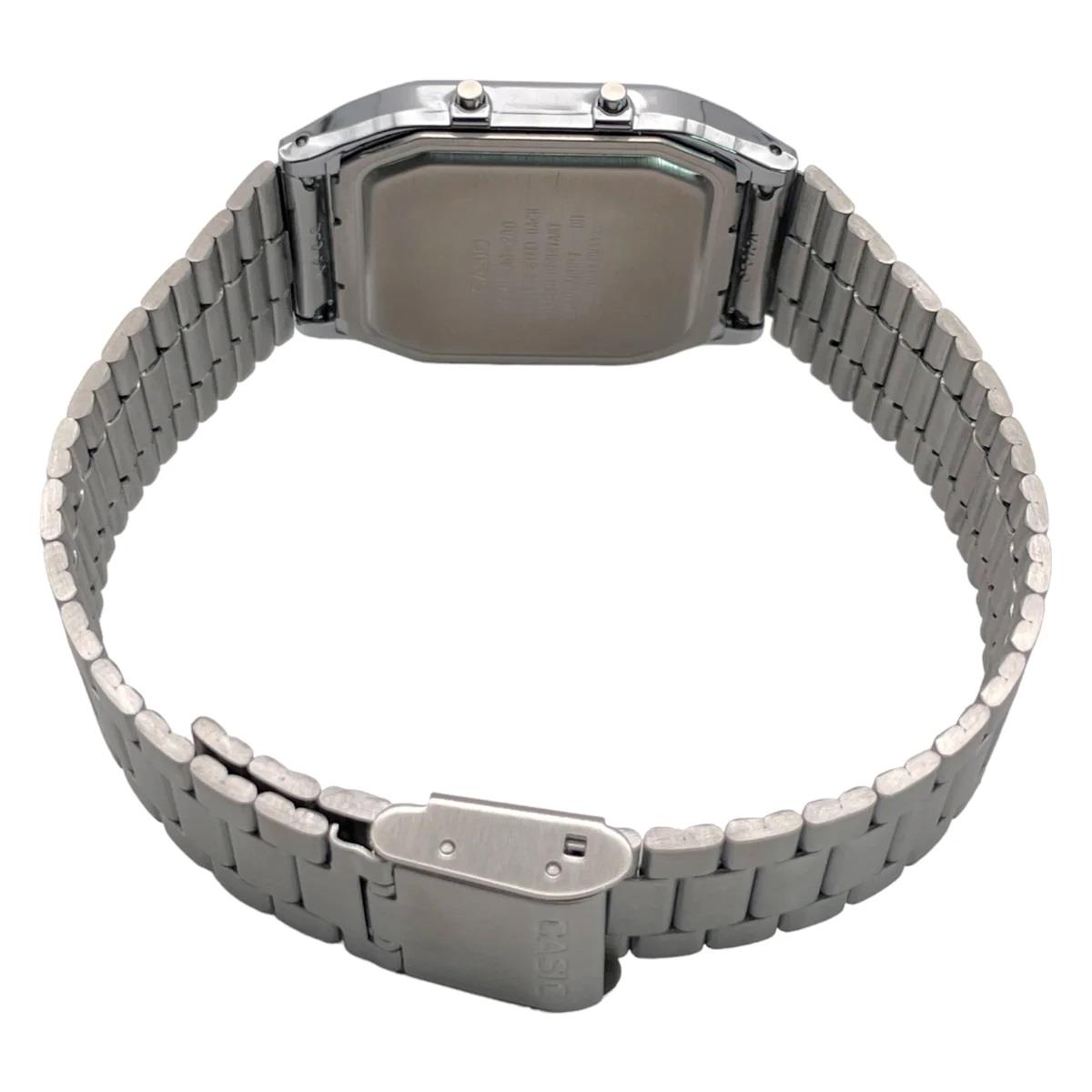 ساعت مچی مردانه کاسیو casio با طراحی اسپرت بند استیل با قاب مستطیلی نقره ای و صفحه مستطیل آبی با نمایشگر دیجیتالی عقربه ای و قابلیت داشتن نور پشت صفحه /روز و شب /زنگ هشدار/کرنوگراف/ تقویم / روزهای هفته/دوزمانه و موتور ژاپنی با انرژی باتری و مقاوم در برابر آب تا عمق 30 متر به همراه گارانتی بین المللی