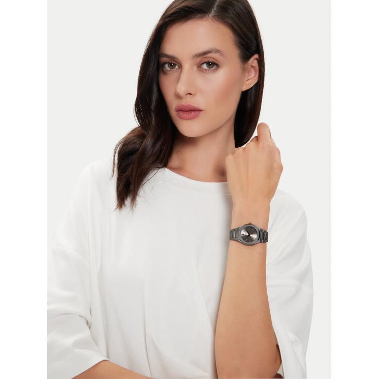 ساعت مچی زنانه دی وان میلانو d1milano با طراحی کلاسیک بند فلزی دودی و قاب فلزی دودی و صفحه گرد دودی با موتور ژاپنی با انرژی باتری و مقاومت در برابر آب تا عمق 50 متر به همراه گارانتی بین المللی