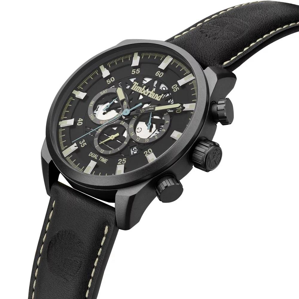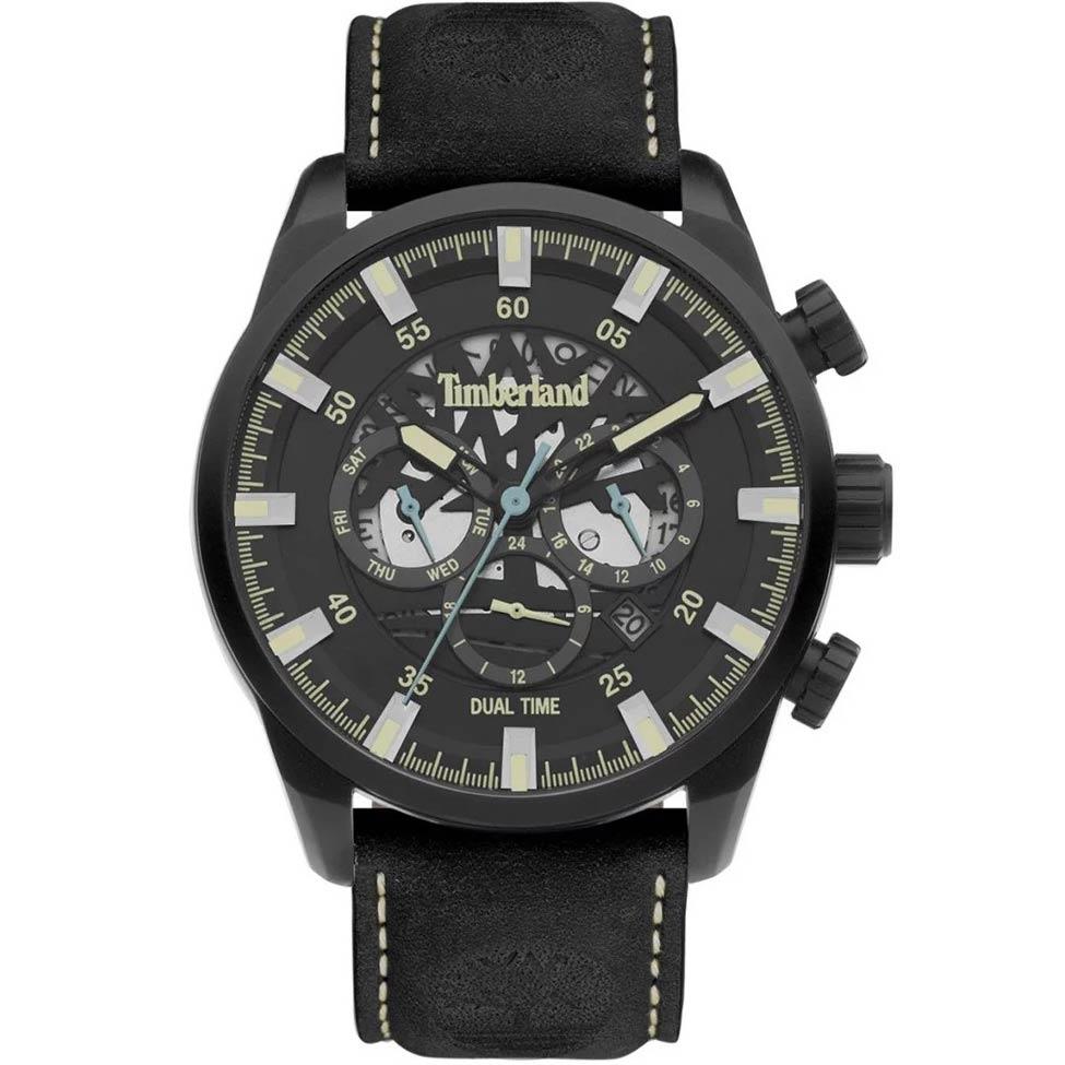 ساعت مچی مردانه تیمبرلند Timberland با طراحی روزانه بند چرمی مشکی و قاب فلزی مشکی و صفحه گرد مشکی با قابلیت دو زمانه , شب نما , تقویم , روزهای هفته و موتور ژاپنی با انرژی باتری و مقاومت در برابر آب تا عمق 50 متر به همراه دو سال گارانتی بین المللی