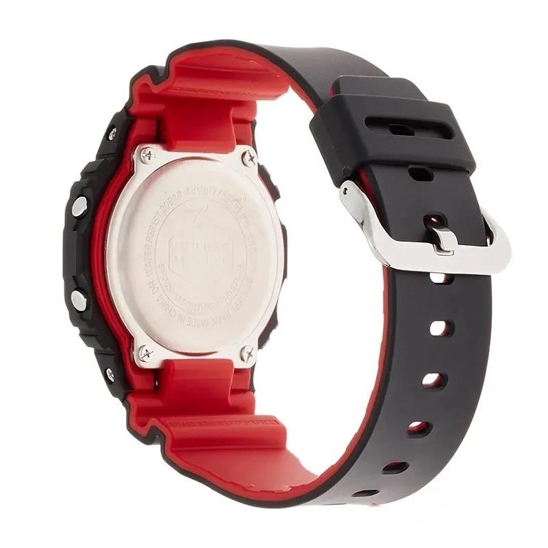 ساعت مچی مردانه کاسیو casio با طراحی اسپرت بند سیلیکونی قرمز مشکی با قاب مربع مشکی و صفحه مشکی با نمایشگر دیجیتالی و قابلیت تقویم / کرنوگراف / تایمر شمارش معکوس /نور پشت صفحه / زنگ هشدار/ ضد ضربه /روز و شب / روزهای هفته / دوزمانه  و موتور ژاپنی با انرژِی باتری و مقاوم در برابر آب تا عمق 200 متر به همراه گارانتی بین المللی