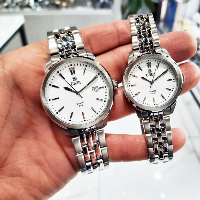 ساعت مچی مردانه / زنانه کاور Cover با طراحی روزانه بند استیل قاب گرد استیل و صفحه گرد سفید با شیشه ضد خراش و قابلیت داشتن تقویم و موتور سوییسی با انرژِی باتری و مقاوم در برابرآب تا عمق 50 متر به همراه گارانتی بین المللی