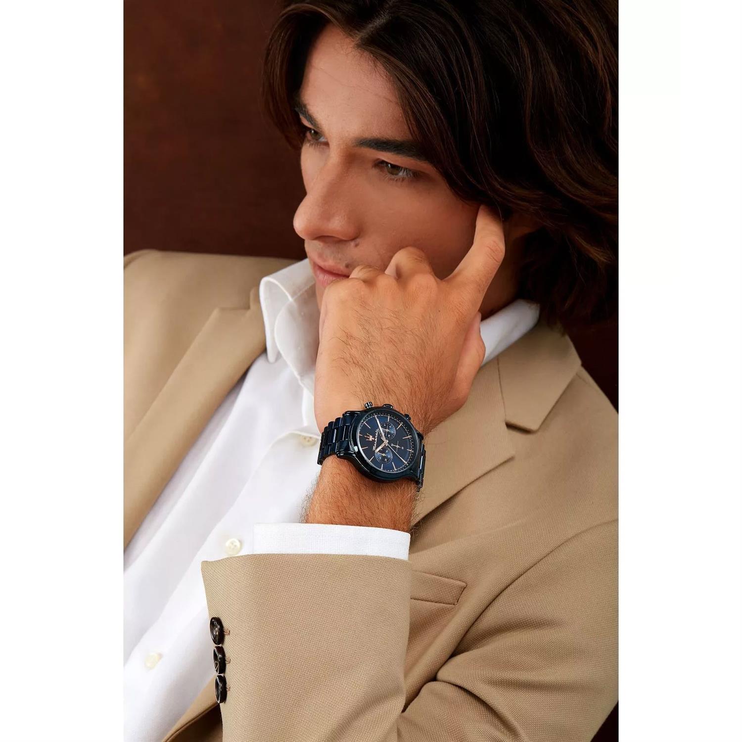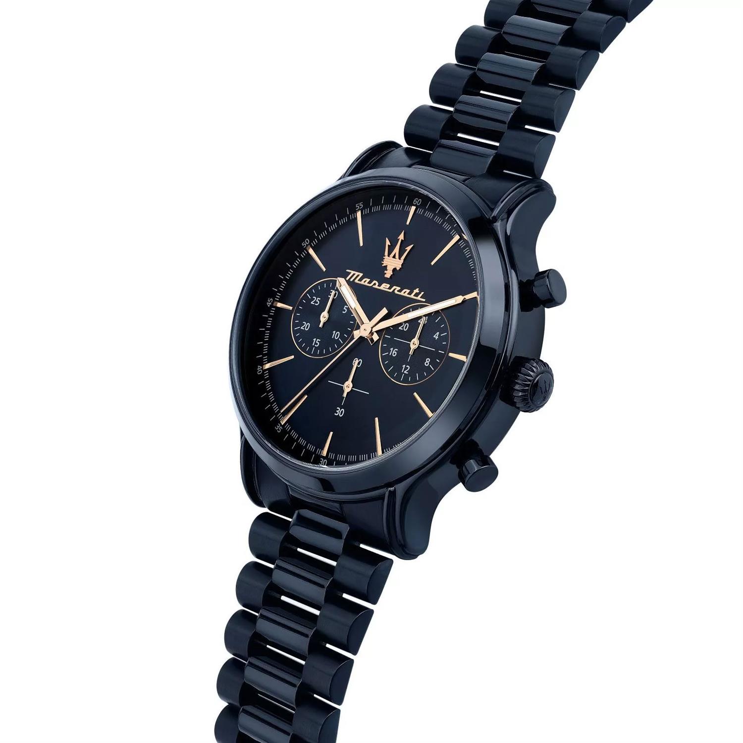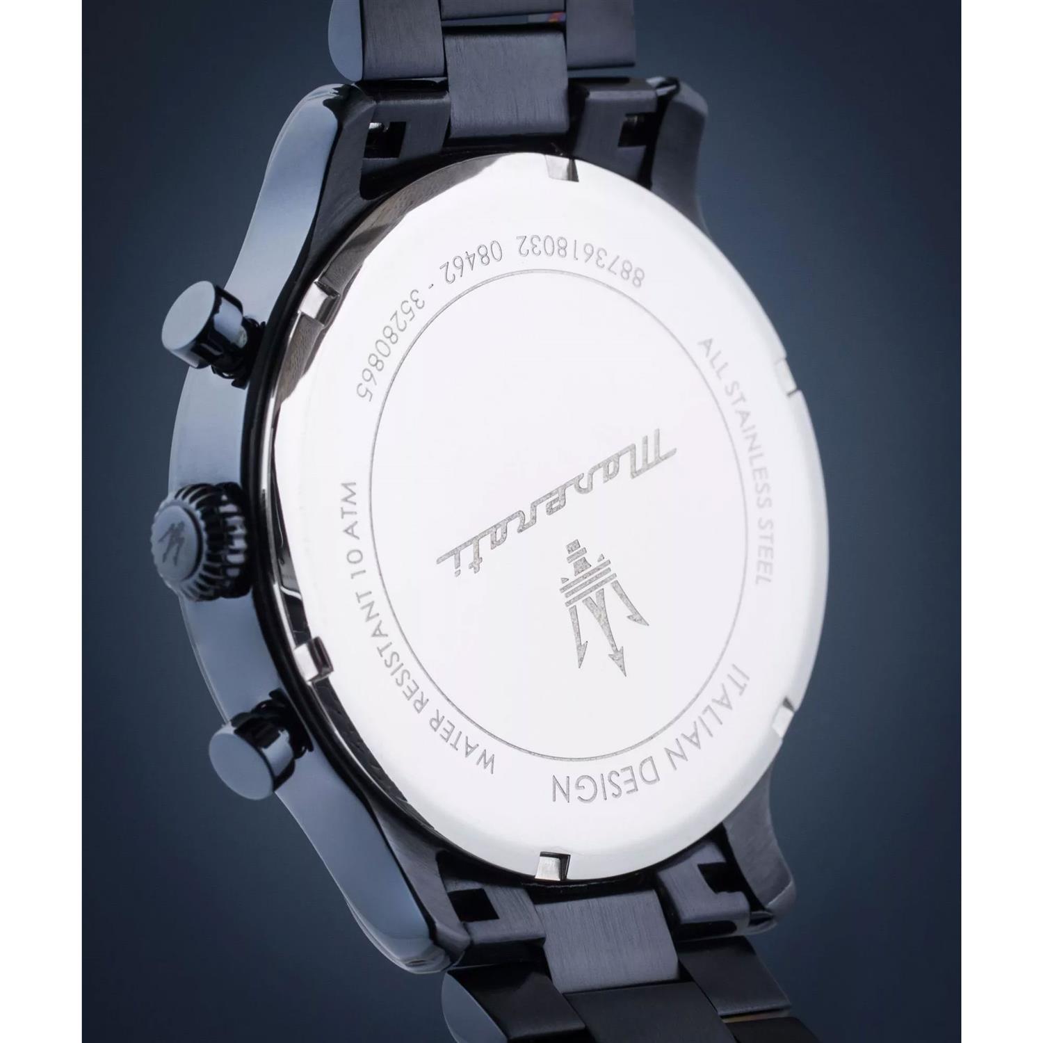 ساعت مچی مردانه مازراتی maserati با طراحی کلاسیک بند فلزی سرمه ای و قاب گرد سرمه ای و صفحه گرد سرمه ای و قابلیت داشتن کرنوگراف شب نما با موتور ژاپنی و انرژی باتری و مقاوم در برابر آب تا عمق 100 متر به همراه گارانتی بین المللی