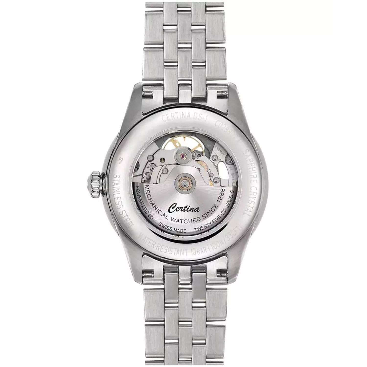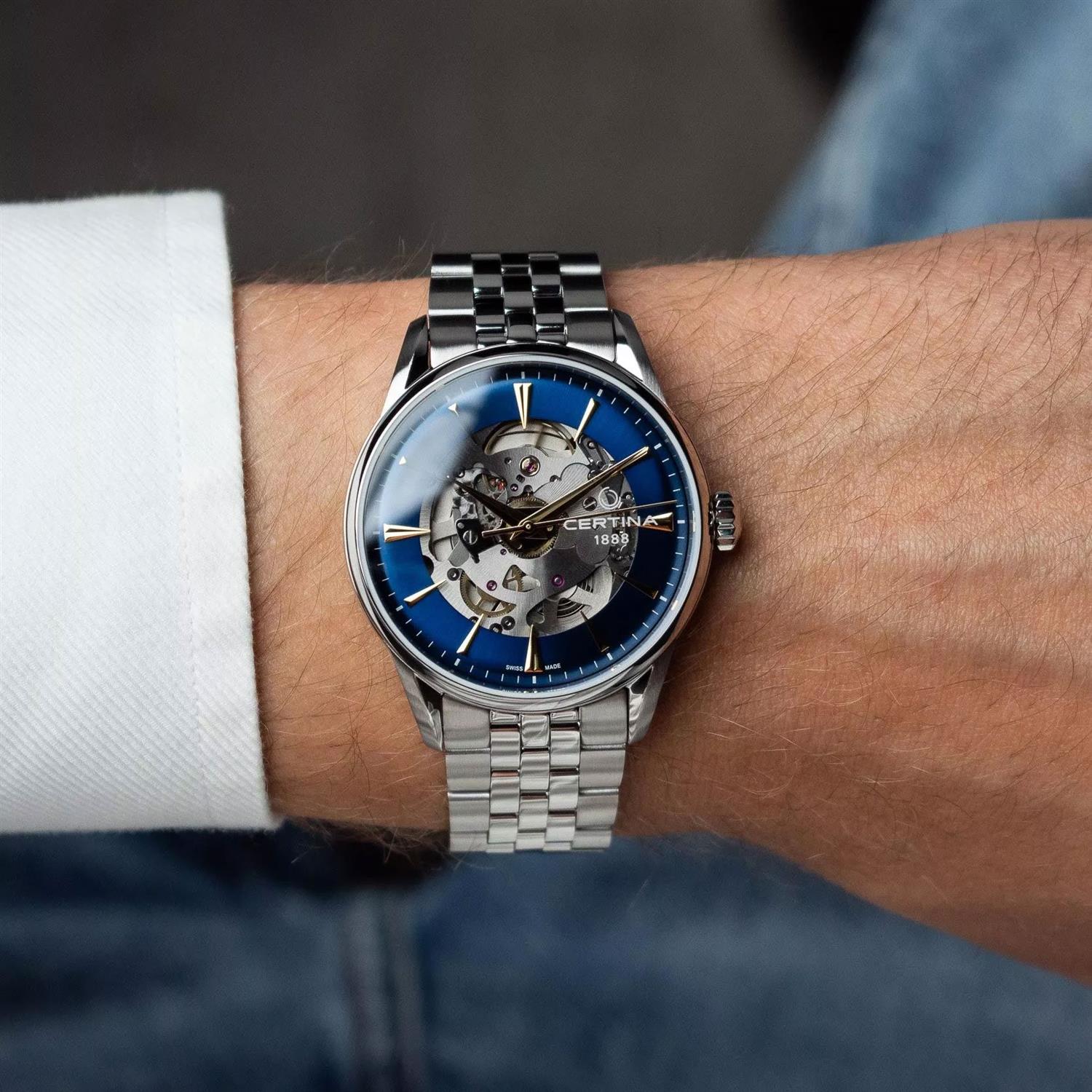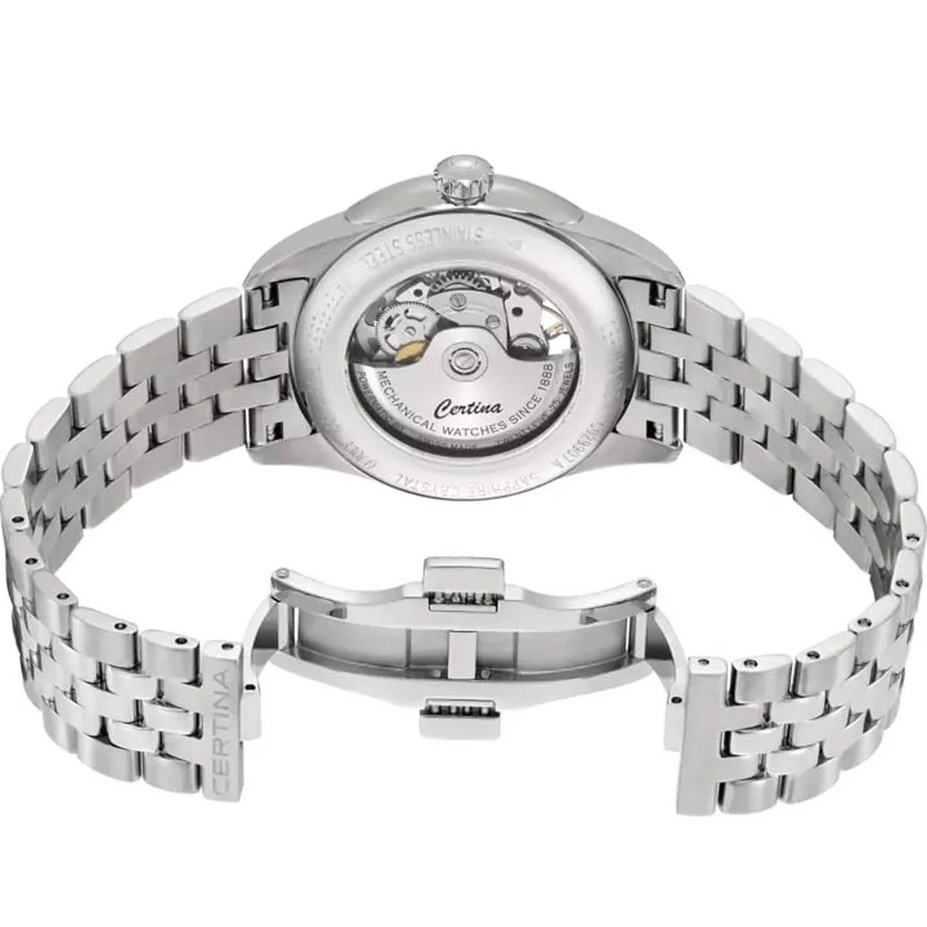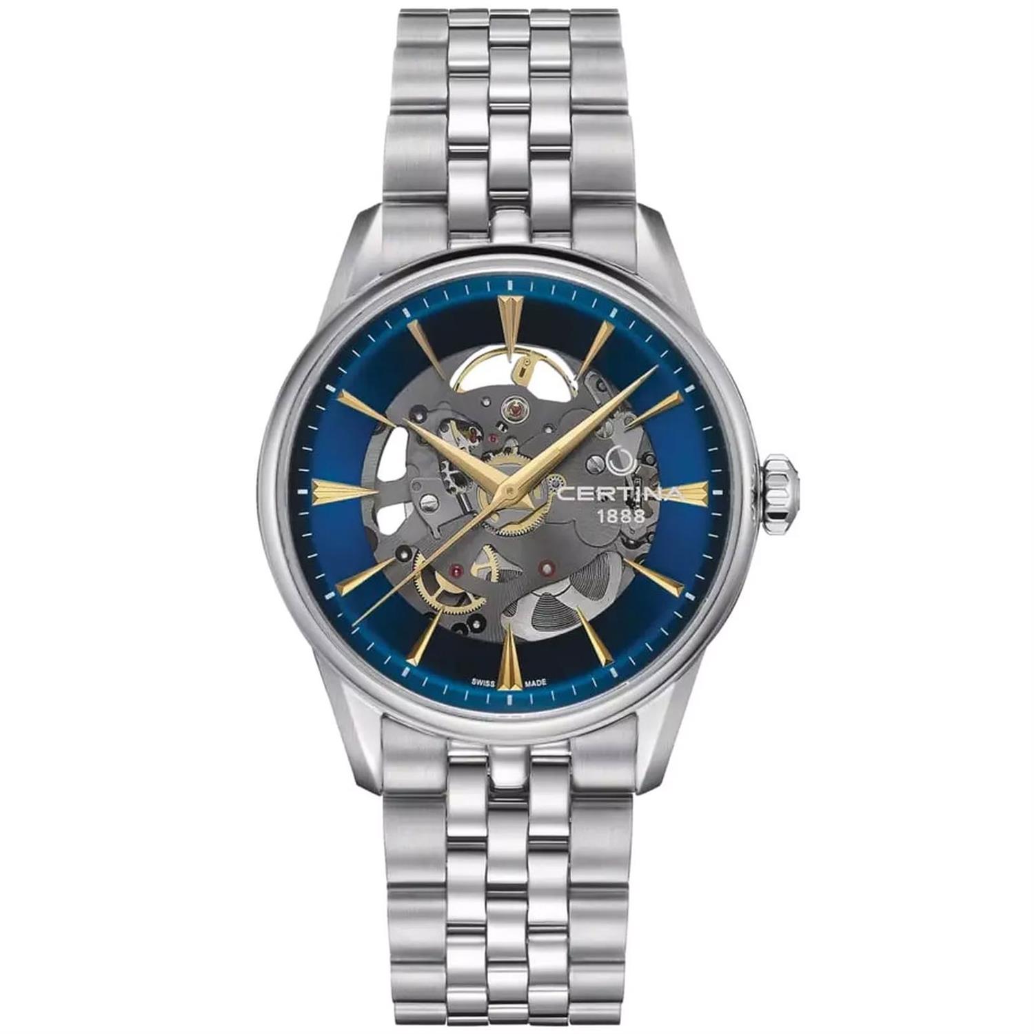 ساعت مچی مردانه سرتینا CERTINA با طراحی اسپرت بند استیل / قاب گرد استیل و صفحه اسکلتون سرمه ای با شیشه ضد خراش و ضد انعکاس نور و موتوراتوماتیک سویییسی با انرژی مکانیکی و مقاوم در برابر آب تا عمق 100 متر به همراه  گارانتی بین المللی