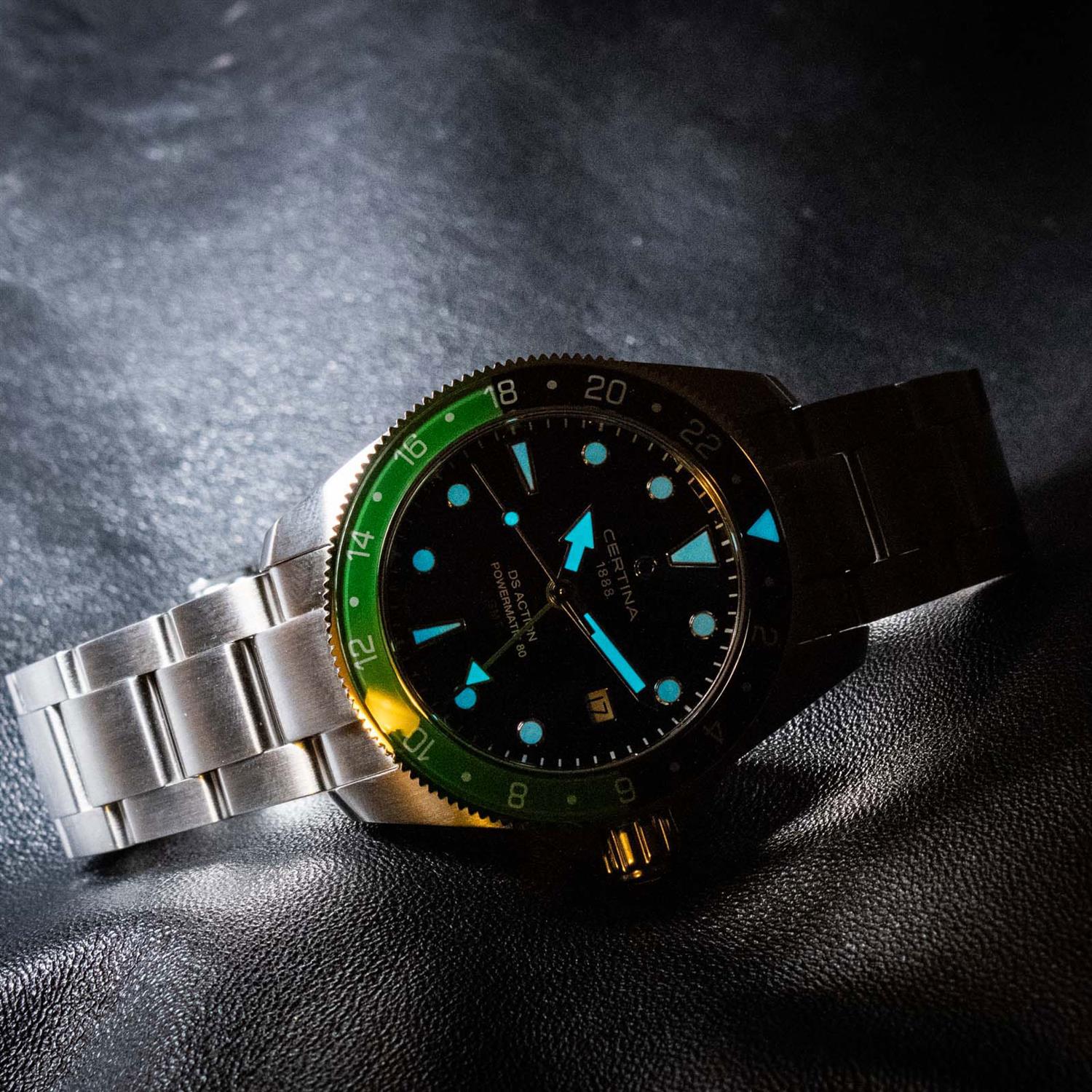 ساعت مچی مردانه سرتینا CERTINA با طراحی اسپرت بند استیل / قاب گرد استیل سبزمشکی و صفحه گرد مشکی با شیشه ضد خراش و ضد انعکاس نور و موتوراتوماتیک سویییسی با انرژی مکانیکی و قابلیت داشتن تقویم / شب نما / دوزمانه/ زه تاچی متر و مقاوم در برابر آب تا عمق 200 متر به همراه  گارانتی بین المللی