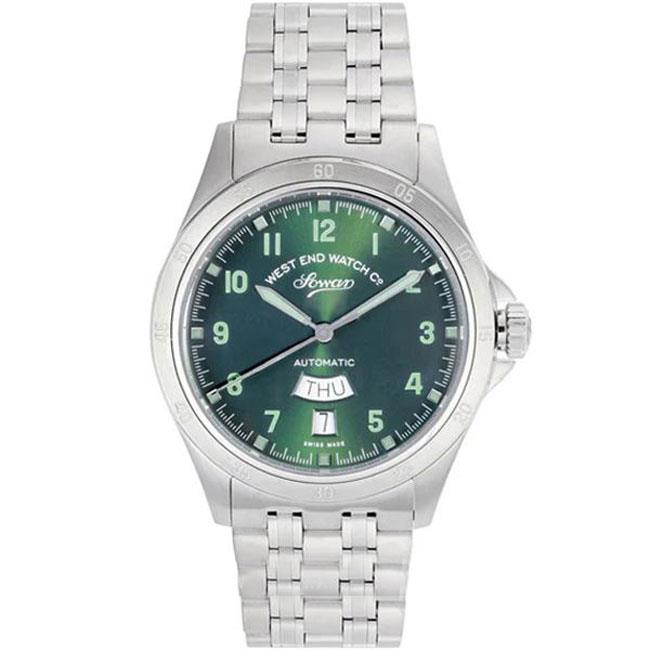 ساعت مچی مردانه وست اند واچ westendwatch با طراحی روزانه بند استیل / قاب استیل و صفحه گرد سبز با شیشه ضد خراش و قابلیت داشتن شب نما / تقویم / روزهای هفته و موتور اتوماتیک سوییسی با انرژی مکانیکی و مقاوم در برابر آب تا عمق 100 متر به همراه گارانتی بین المللی