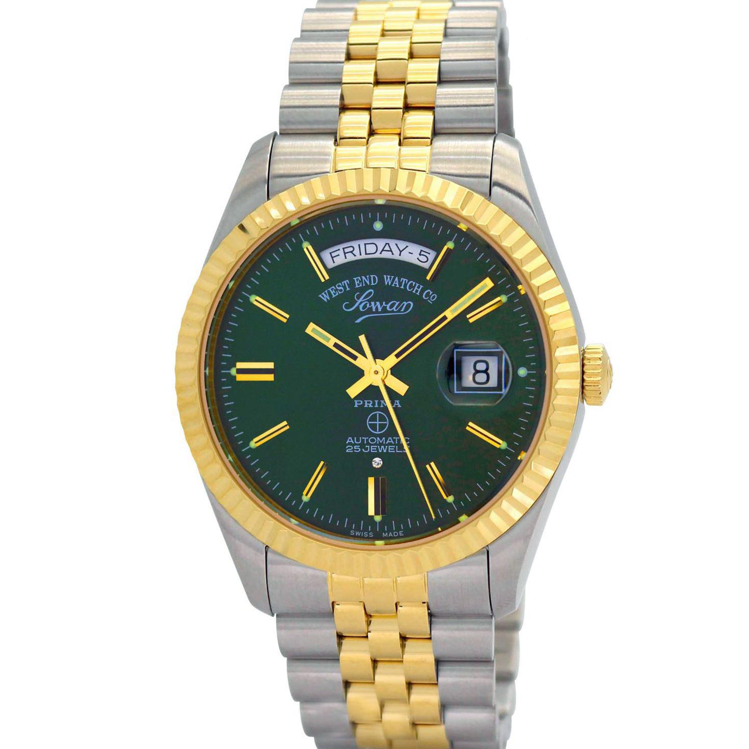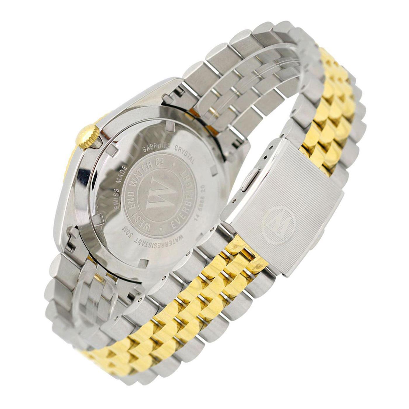 ساعت مچی مردانه وست اند واچ westendwatch با طراحی روزانه بند استیل طلایی/ قاب طلایی استیل و صفحه گرد سبز با شیشه ضد خراش و قابلیت داشتن شب نما / تقویم / روزهای هفته و موتور اتوماتیک سوییسی با انرژی مکانیکی و مقاوم در برابر آب تا عمق 50 متر به همراه گارانتی بین المللی