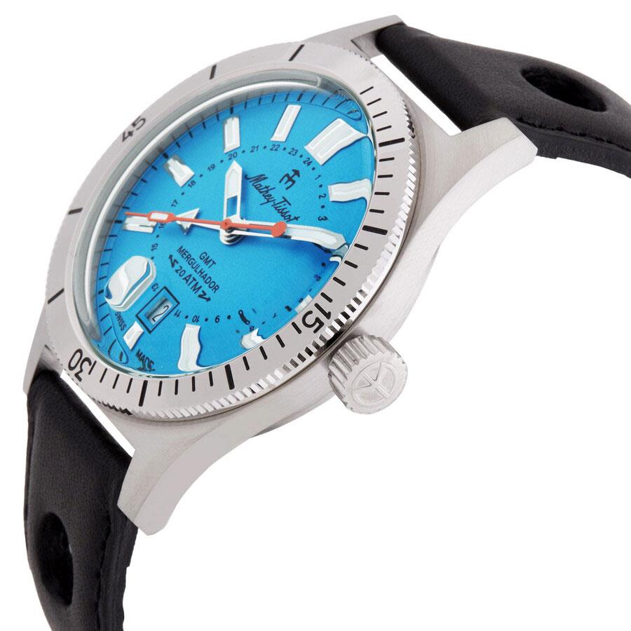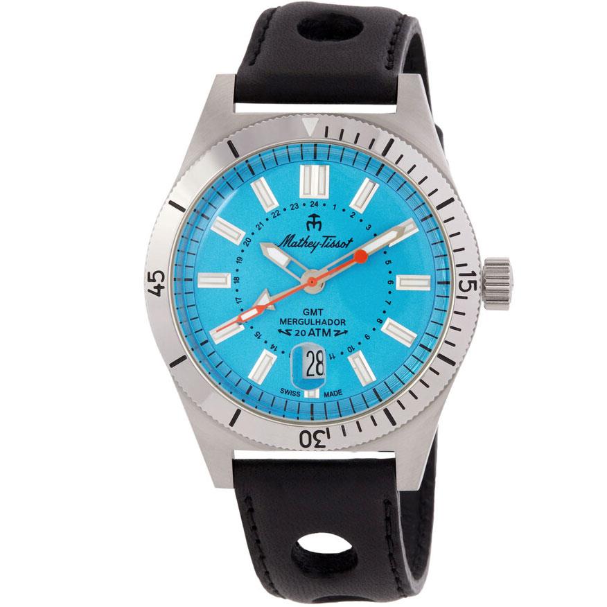 ساعت مچی مردانه متی تیسوت matheytissot با طراحی روزانه بند چرمی و قاب گرد استیل با صفحه گرد آبی و شیشه ضد خراش و موتور سوییسی با انرژی باتری و قابلیت داشتن زه چرخان/ شب نما/ تقویم / دوزمانه و مقاومت در برابر آب تا عمق 200 متر به همراه دو سال گارانتی بین المللی