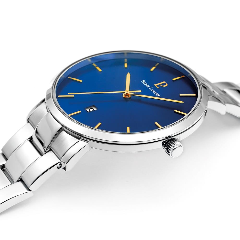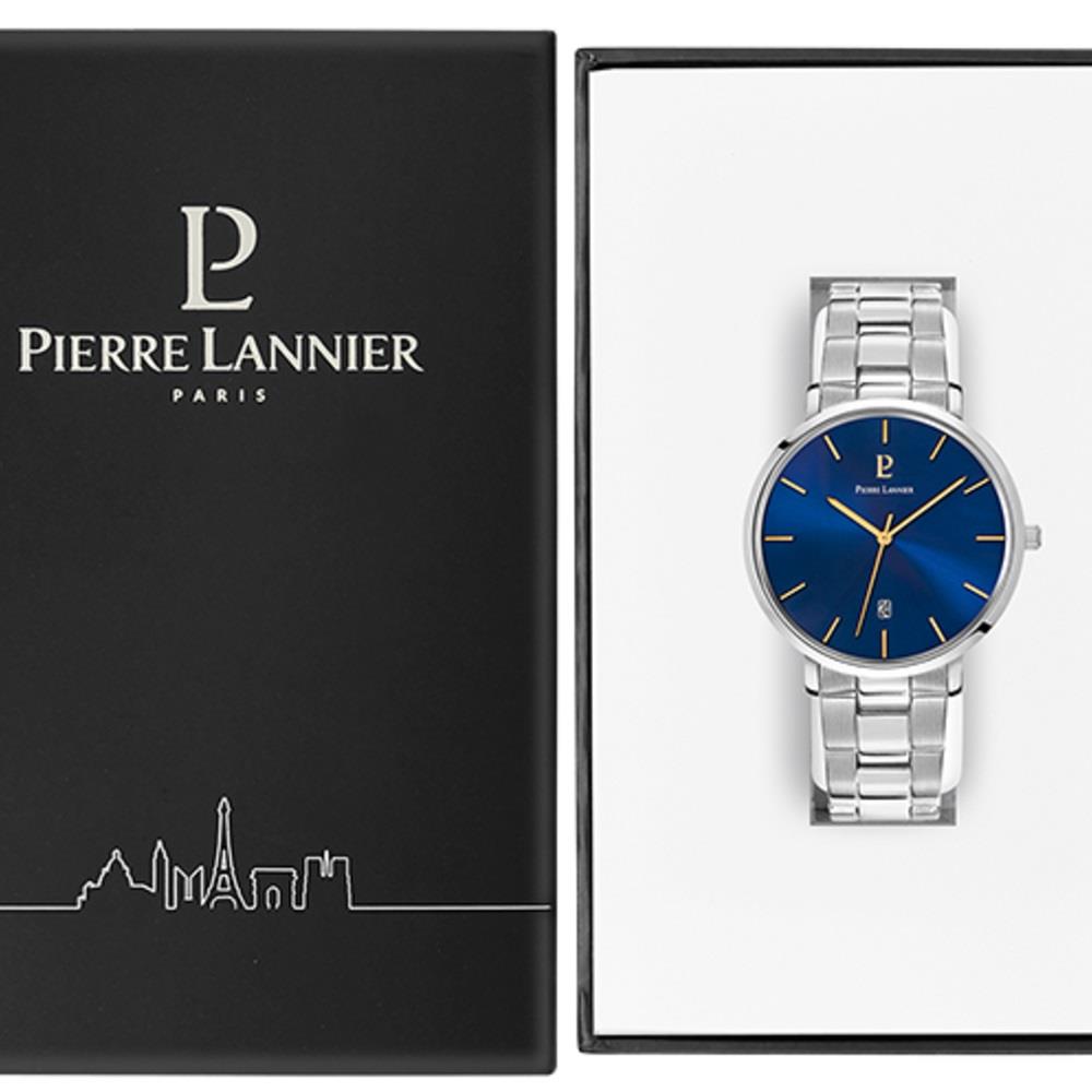 ساعت مچی مردانه پیرلنیر pierre lannier با طراحی روزانه بند استیل و قاب گرد استیل و صفحه گرد سرمه ای با قابلیت داشتن تقویم و موتور ژاپنی با انرژی باتری و مقاوم در برابر آب تا عمق 30 متر به همراه گارانتی بین المللی