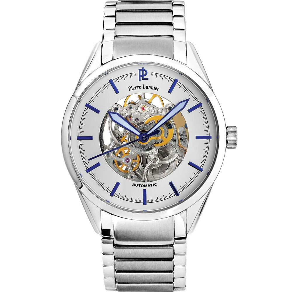 ساعت مچی مردانه پیرلنیر pierre lannier با طراحی روزانه بند استیل و قاب گرد استیل و صفحه اسکلتون سفید با قابلیت داشتن شب نما و موتور اتوماتیک ژاپنی با انرژی مکانیکی و مقاوم در برابر آب تا عمق 50 متر به همراه گارانتی بین المللی