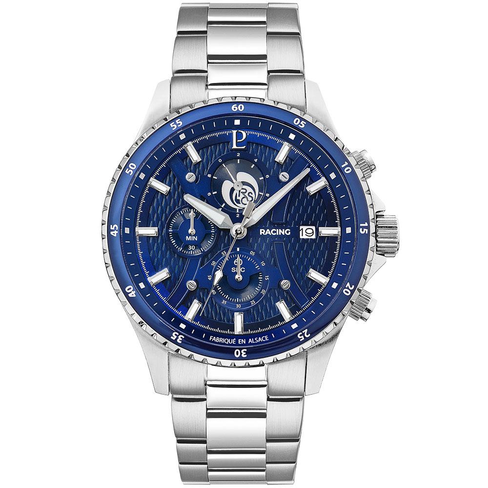 ساعت مچی مردانه پیرلنیر pierre lannier با طراحی روزانه بند استیل و قاب گرد استیل سرمه ای و صفحه گرد سرمه ای با قابلیت داشتن شب نما/ تقویم / کرنوگراف و موتور ژاپنی با انرژی باتری و مقاوم در برابر آب تا عمق 30 متر به همراه گارانتی بین المللی