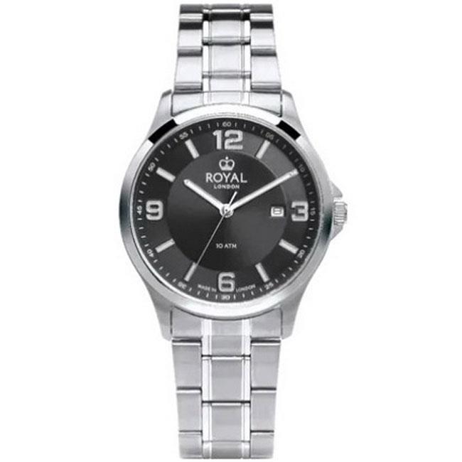 ساعت مچی مردانه ROYAL LONDON رویال لندن با طراحی روزانه بند استیل و قاب گرد استیل و صفحه گرد مشکی با قابلیت داشتن تقویم شب نما و موتور ژاپنی با انرژی باتری و مقاومت در برابر آب تا عمق 100 متر به همراه گارانتی بین المللی