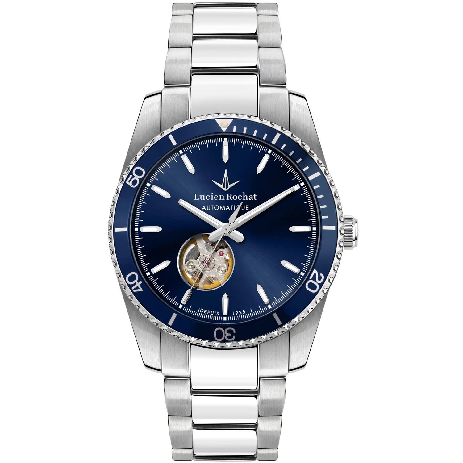 ساعت مچی مردانه لوسین روشا lucian rochat با طراحی روزانه بند استیل قاب گرد سرمه ای استیل و صفحه قلب باز سرمه ای با شیشه ضد خراش و قابلیت زه چرخان/ شب نما و موتور اتوماتیک ژاپنی با انرژی مکانیکی و مقاوم در برابر آب تا عمق 100 متر به همراه گارانتی بین المللی